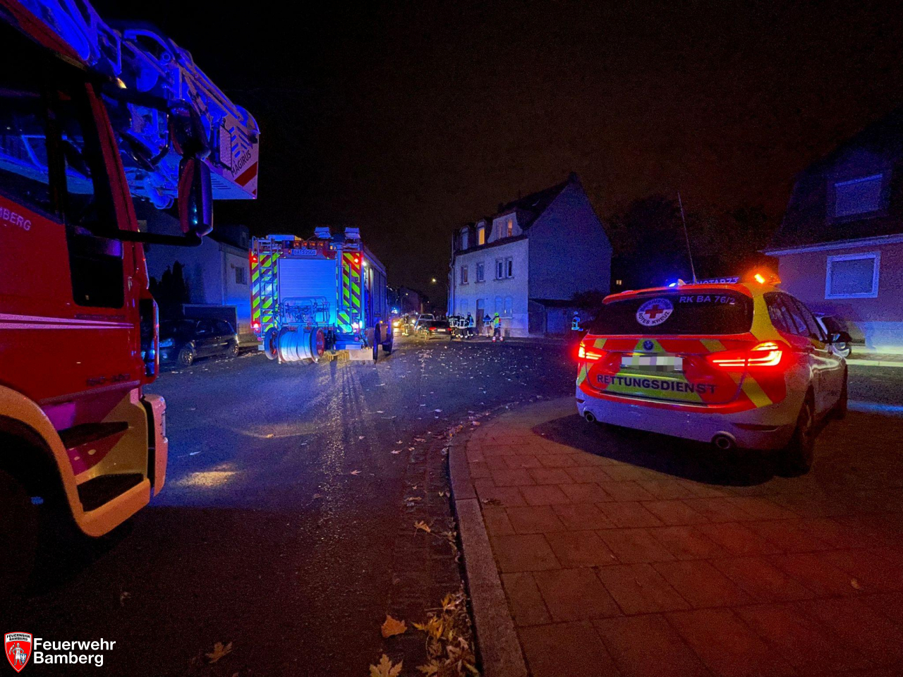 Am Abend wurde die Feuerwehr Bamberg nochmals mit einem Großaufgebot zu einem Zimmerbrand mit Personen in Gefahr alarmiert. Anwohner meldeten Rauchentwicklung und noch mindestens eine Person in der betroffenen Wohnung.
