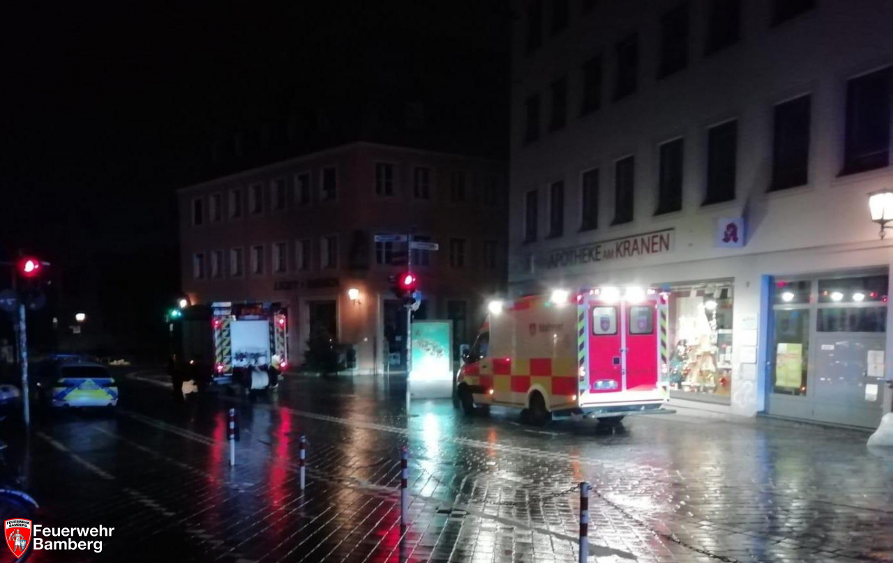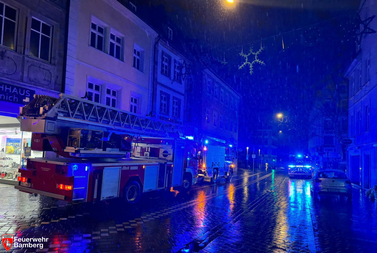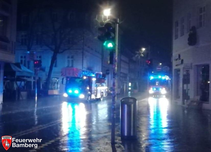 In der Nacht wurde die Feuerwehr Bamberg in die Innenstadt zu einem piepsenden Rauchwarnmelder mit Rauchgeruch im Haus alarmiert. Bewohner meldeten das Geräusch und Geruch aus der vermeindlichen Wohnung und alarmierten die Rettungskräfte.