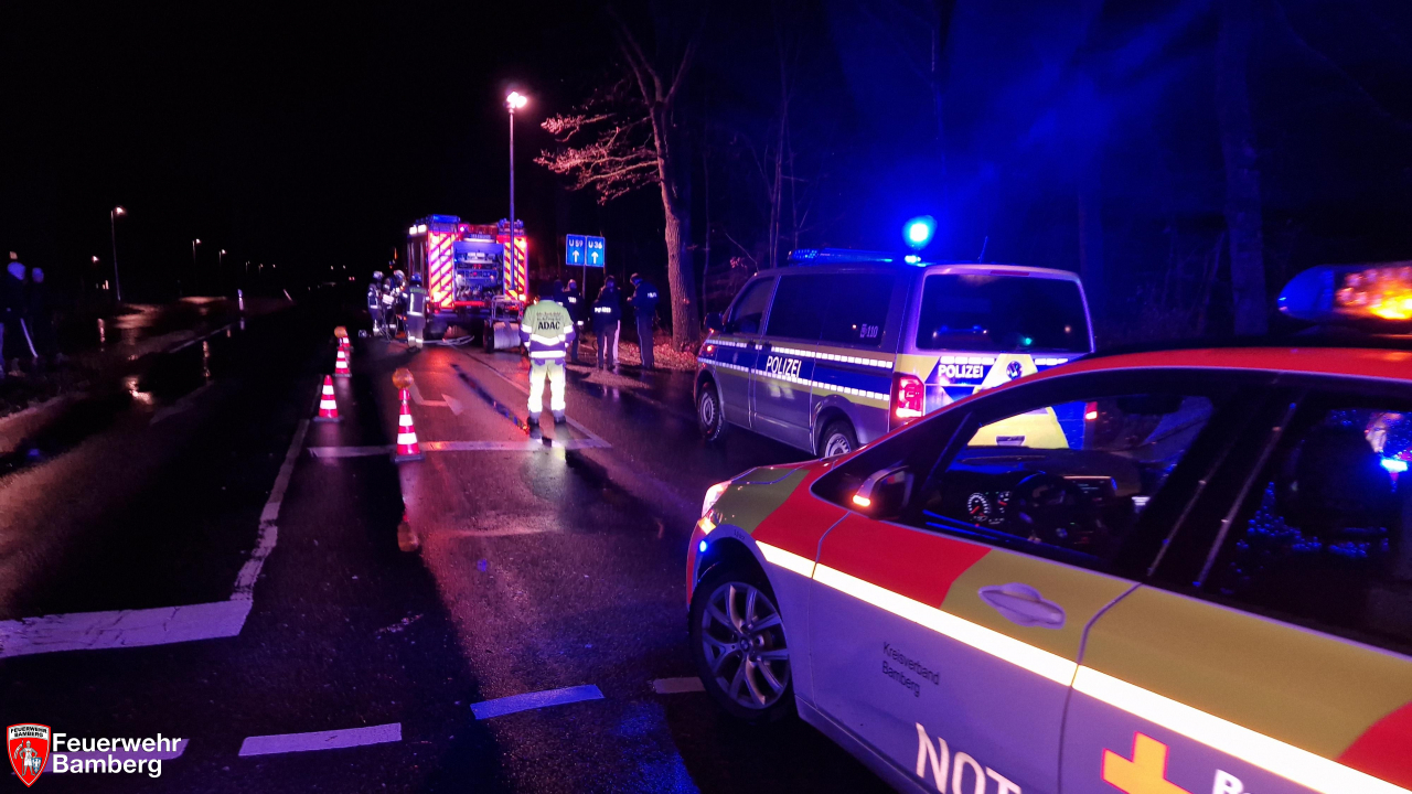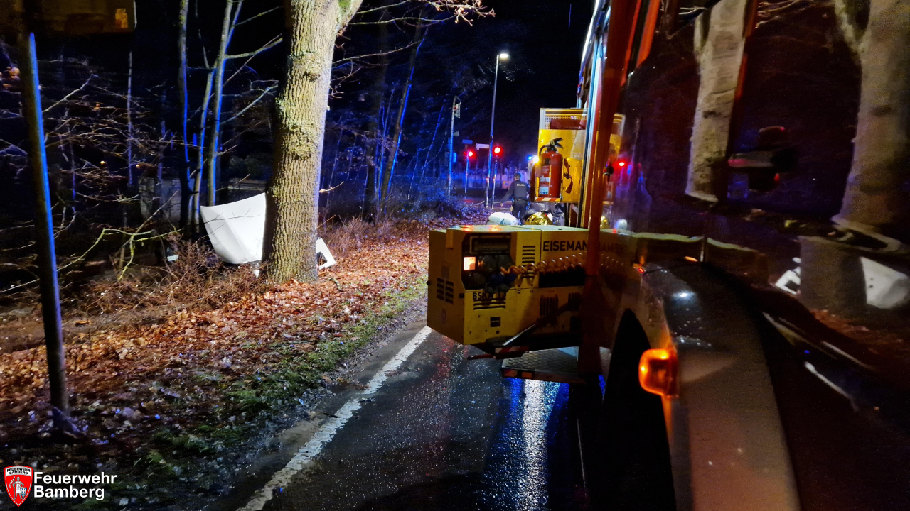 Am Abend wurde die Feuerwehr Bamberg zu einem Verkehrsunfall am östlichen Ortsrand alarmiert. Ein Pkw prallte mit vier Insassen besetzt Richtung stadtauswärts an der Kreuzung zur Armeestraße auf einen Baum. Ein Insasse wurde dabei schwer, zwei weitere leicht verletzt. Alle Insassen konnten sich selbst befreien oder wurden von Zeugen des Geschehens aus dem Fahrzeug befreit.