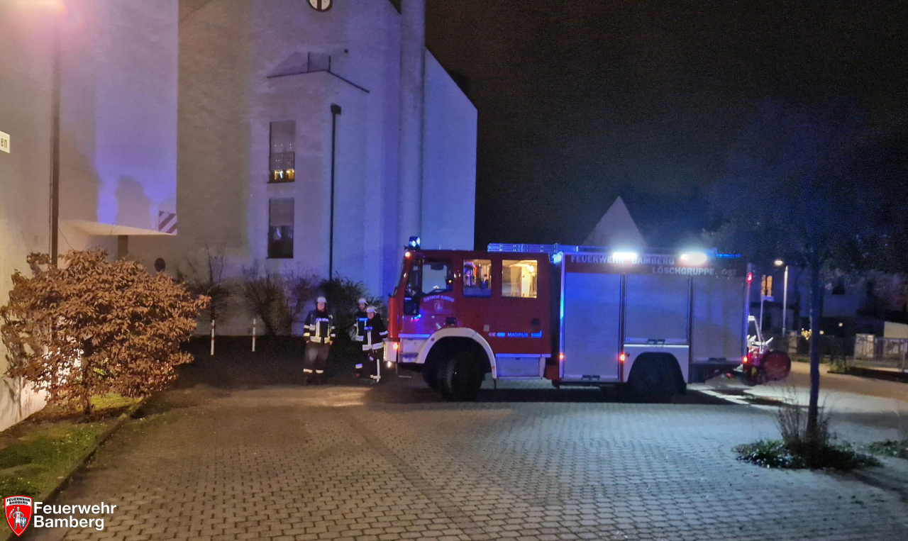 Kurze Zeit später wurde die Feuerwehr Bamberg nochmals zu einer Rauchentwicklung im Gebäude, diesmal im Birkengraben und mit Alarm für die Löschgruppe Ost, zum Einsatz alarmiert. Eine Bewohnerin will Rauchentwicklung aus einem Waschraum im Keller und das Piepsen eines Rauchwarnmelders vernommen haben.