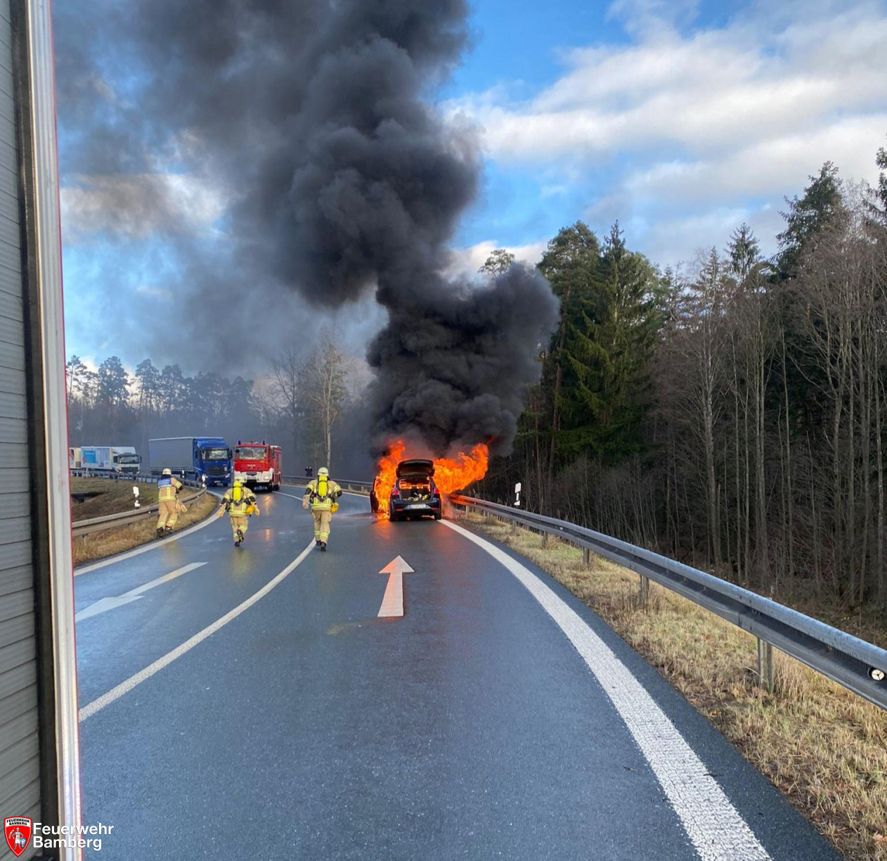 Am Nachmittag wurde die Feuerwehr Bamberg zur A73, Anschlussstelle Bamberg Ost zu einem Pkw-Brand alarmiert.