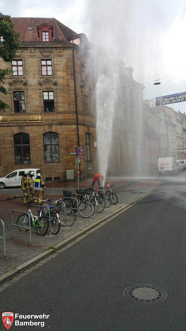 Eine Näherung an das schrägstehende Standrohr war nicht gefahrlos möglich, da auf dem Wassernetz ein hoher Druck herrscht und umherfliegende Teile zu Verletzungen hätten führen können.