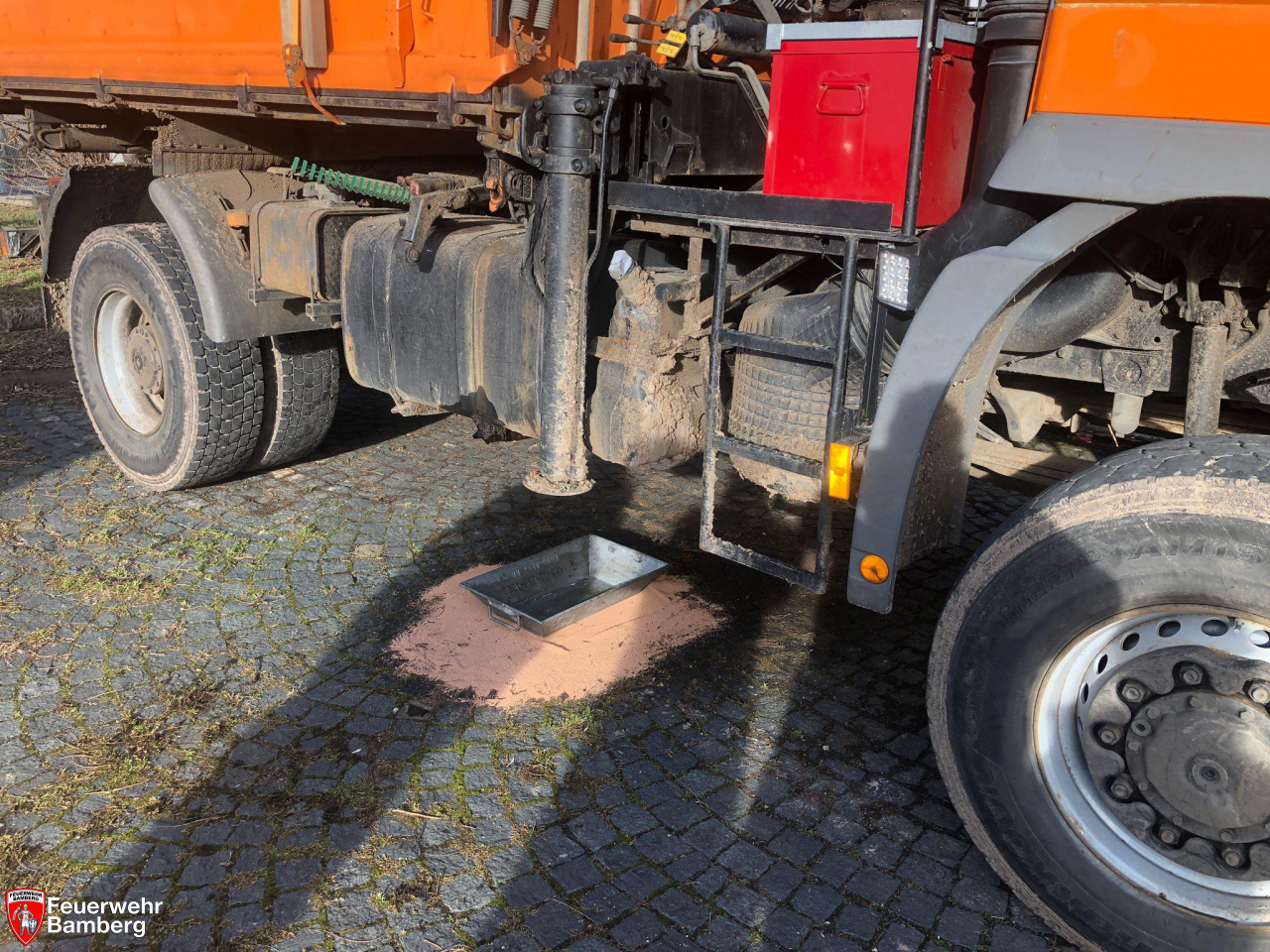Der Feuerwehr Bamberg wurde am Nachmittag zu auslaufenden Diesel aus einem Baustellen-Lkw gerufen.
