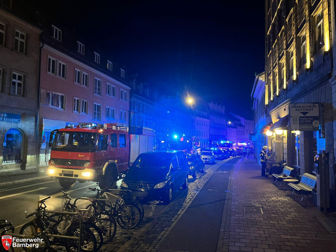Kurz vor Mitternacht wurde die Feuerwehr Bamberg in die Innenstadt zu einer ausgelösten Brandmeldeanlage in einem Hotel alarmiert.