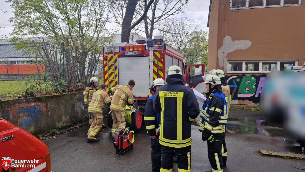 Am Vormittag wurde die Feuerwehr Bamberg in die Erlöserschule zu einer ausgelösten Brandmeldeanlage alarmiert. Bei der Erkundung stellte sich heraus, dass es im Keller tatsächlich zu einer Rauchentwicklung gekommen war, weshalb die Löschgruppe Ost zur Absicherung eingesetzter Atemschutztrupps nachalarmiert wurde.