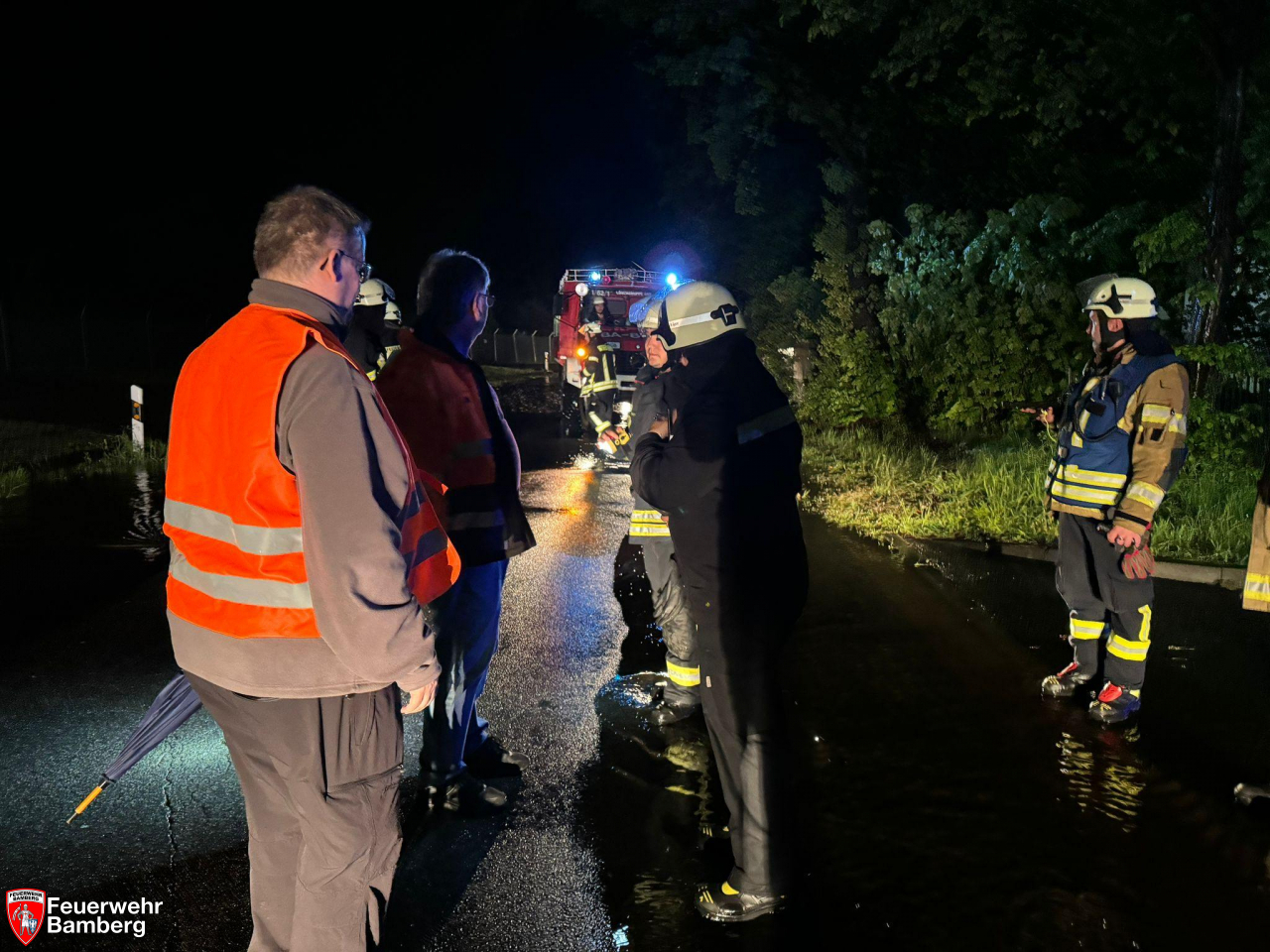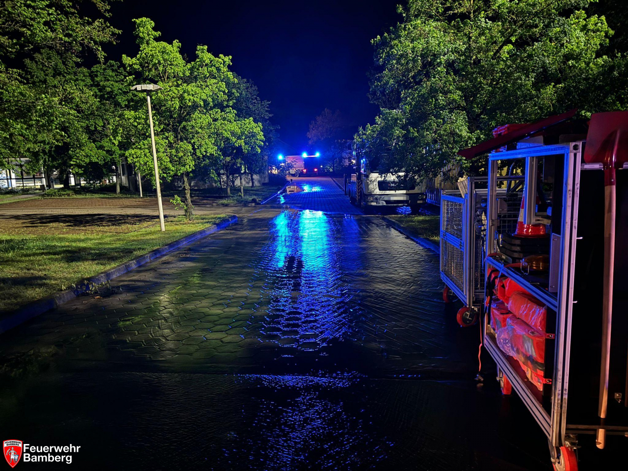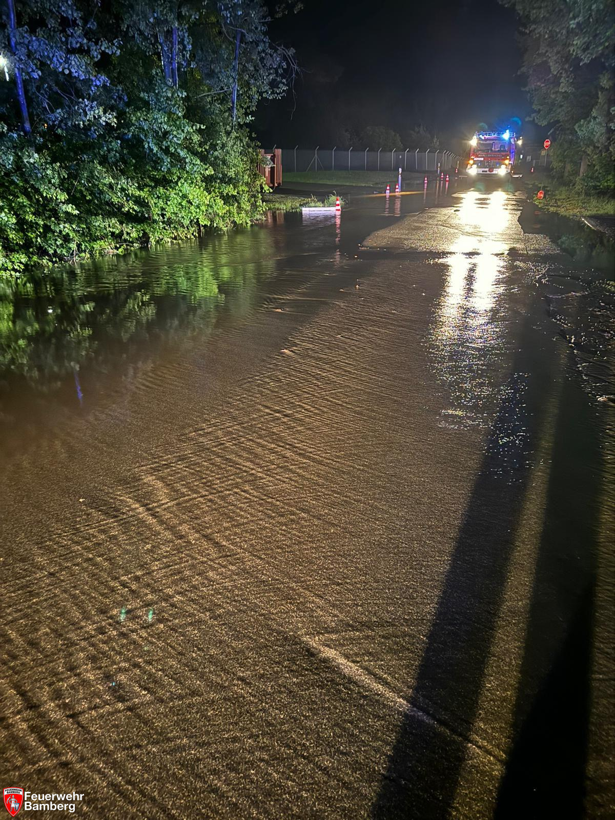 Am Donnerstag kam es in den Abendstunden zu einem Starkregenereignis im Stadtgebiet. Vor allem der Süden und Osten der Stadt waren von den teils ergiebigen Regengüssen betroffen. Kurzzeitig waren alle Bahnunterführungen überflutet und der Verkehr kam zum Erliegen. In der Unterführung Geisfelder Straße blieben zwei Fahrzeuge stecken und versanken nahezu vollständig im Wasser. Die Insassen konnten sich glücklicherweise selbst retten und blieben unverletzt.