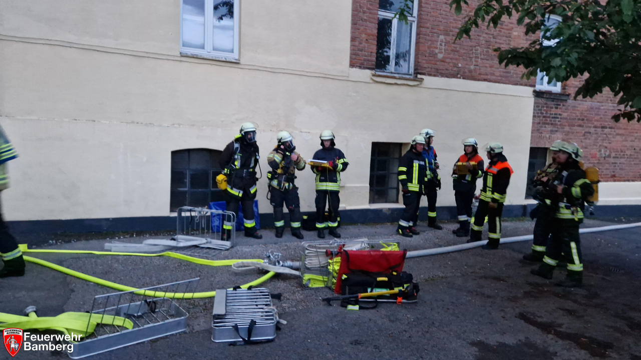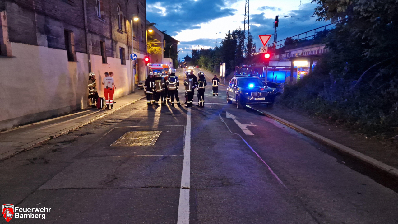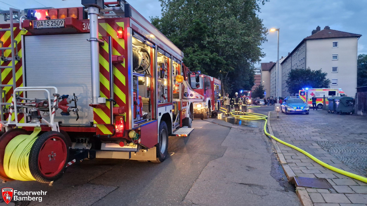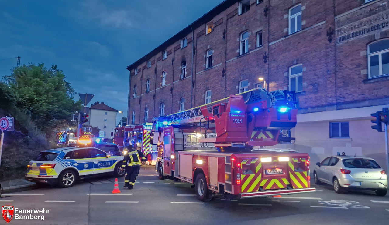 Am Abend wurde die Feuerwehr Bamberg zu einem Zimmerbrand mit Personen in Gefahr in die Theresienstraße alarmiert. Passanten und Anwohner meldeten dunklen Rauch aus einem Fenster im 1. Stock.