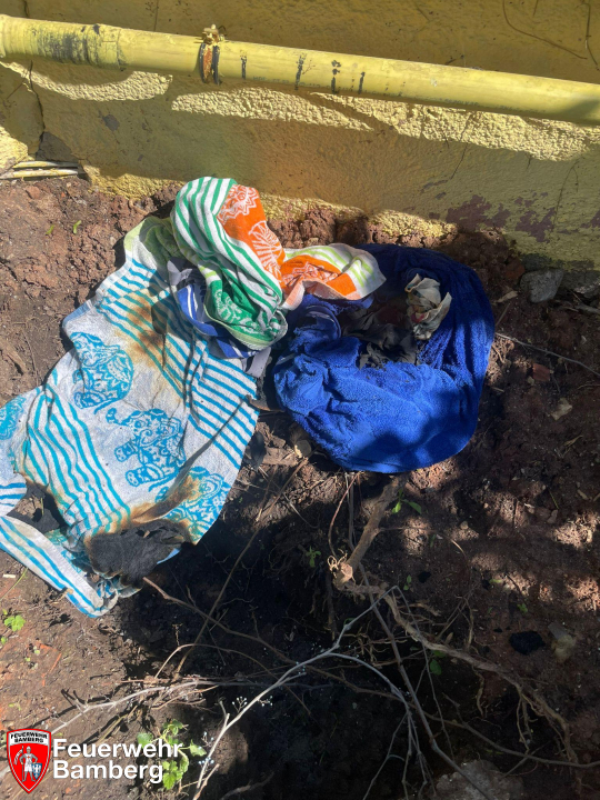 Der Trupp brachte ein Behältnis mit brennenden Stofflappen ins Freie. Die mit Leinöl getränkten Lappen gerieten aufgrund Selbstentzündung in Brand.
