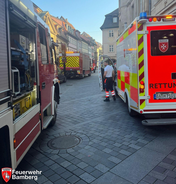 Am Abend wurde die Feuerwehr Bamberg in die Innenstadt zu einem ABC-Einsatz alarmiert. Mehrere Bewohner eines Hauses vermeldeten Gasgeruch im Haus.