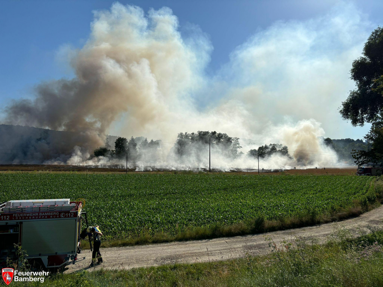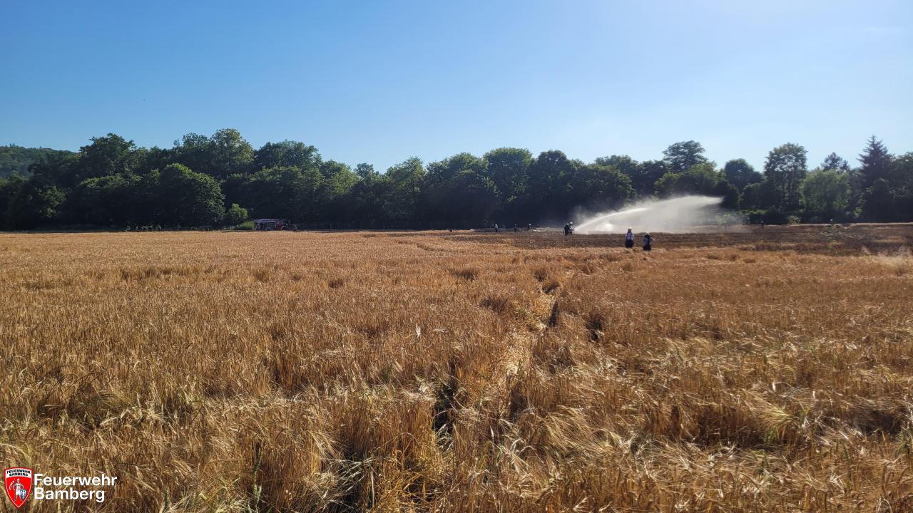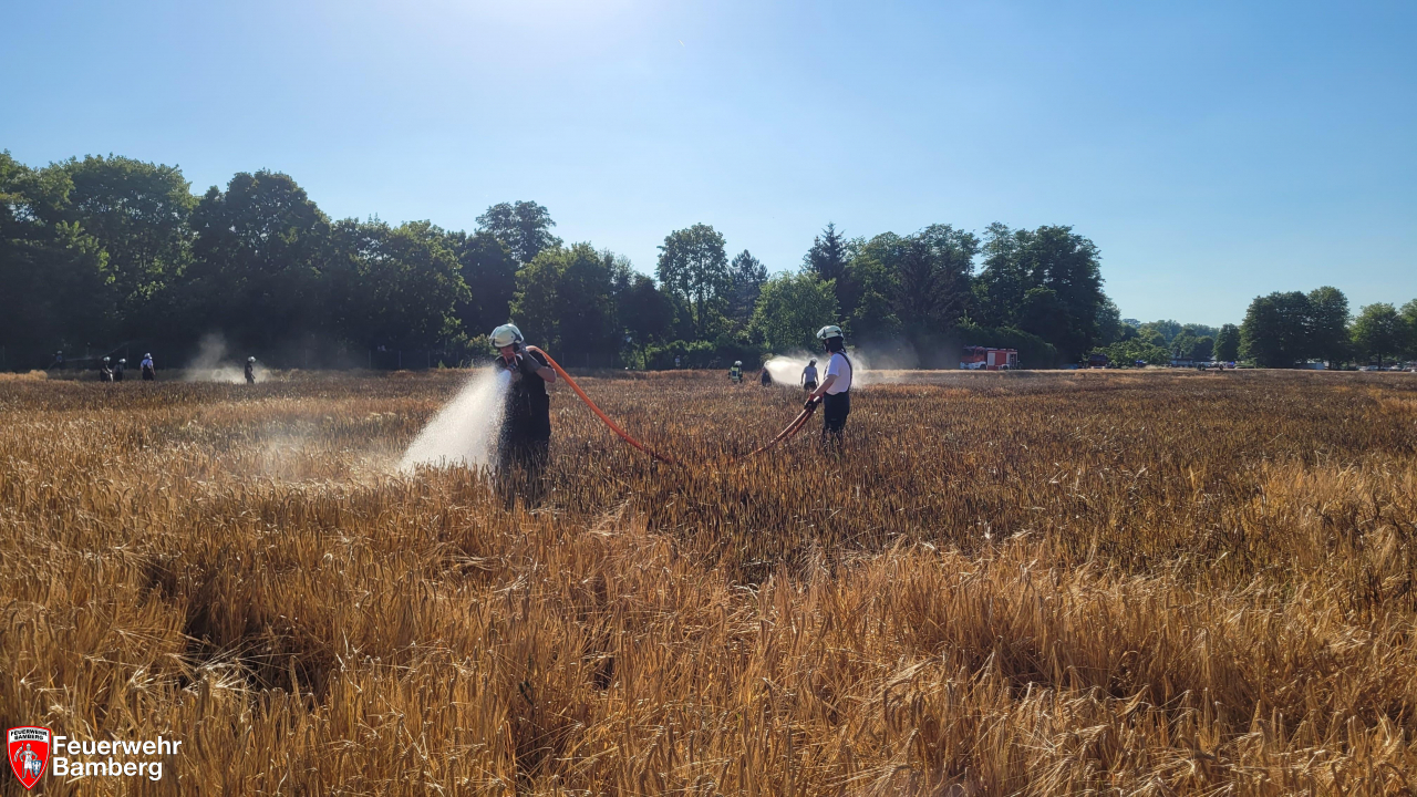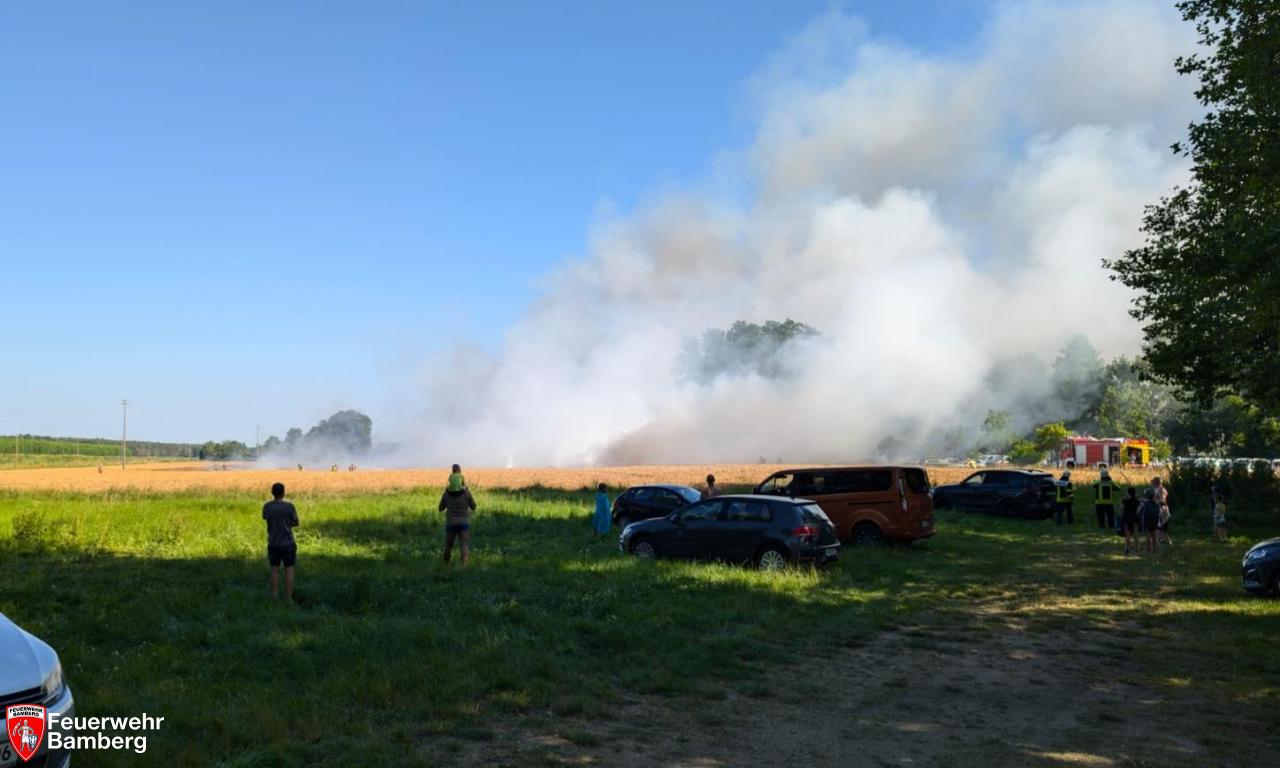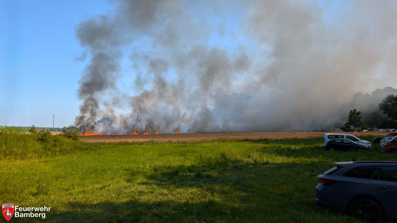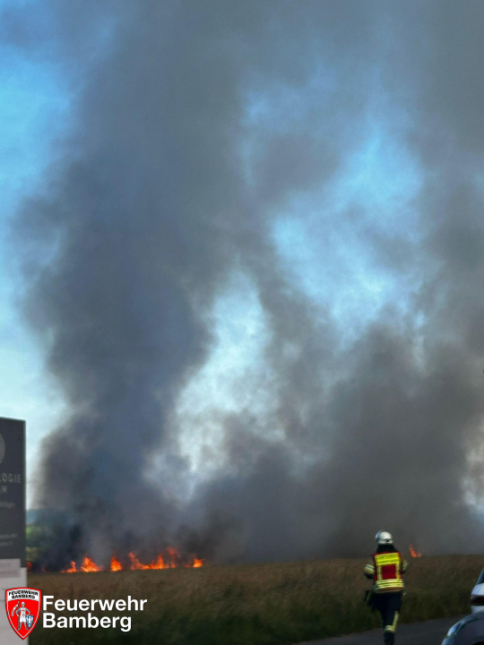 In den Abendstunden am Dienstag kam es zu einem Flächenbrand in der Nähe des Schwimmbades Neptun in Bug. Daraufhin wurden im Versatz von etwa 10 Minuten eine Vielzahl von Einsatzkräften und Fahrzeugen zur Brandbekämpfung alarmiert. Weithin waren die Rauchschwaden bereits erkennbar und wiesen auf eine ausgedehnte Schadenslage hin. Deshalb wurde ohne großen zeitlichen Verzug eine Verstärkung der Einsatzkräfte alarmiert. Die Flammen entstanden aus bislang ungeklärter Ursache in der Mitte eines Getreidefeldes und breiteten sich aufgrund einer steifen Brise und ungünstiger Windrichtung in Richtung Schwimmverein aus. Dichte Rauchschwaden zogen über das Gelände und verbreiteten Unruhe unter den Badegästen. In Abstimmung der Einsatzleitung mit der Badeaufsicht wurde das Gelände geräumt. Durch flüchtende Besucher kam es zu Begegenungsverkehr der Pkw mit anrückenden Feuerwehrfahrzeugen. Zeitweise befand man sich in chaotischen Zuständen. Die beengte Zufahrt an der Baustelle zur Franz-Fischer-Brücke leistete hierbei einen erheblichen Beitrag.