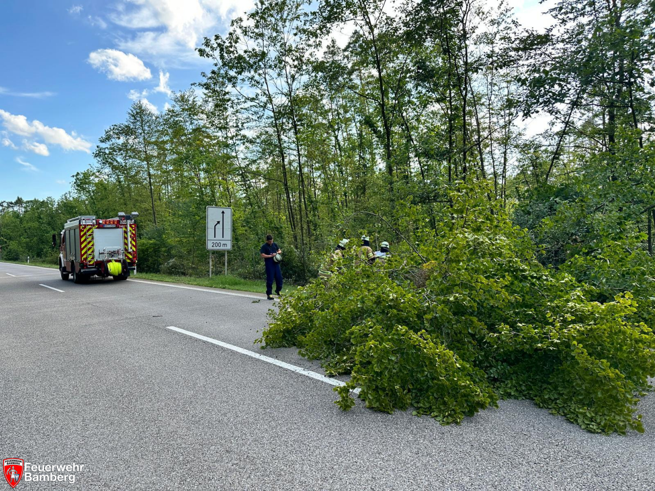 Am Abend wurde die Feuerwehr Bamberg auf die A73 zur Beseitigung Verkehrshindernisses alarmiert. Auf der Abfahrtsspange zur B 505 fiel unvermittelt ein Baum um und blockierte eine Fahrspur.