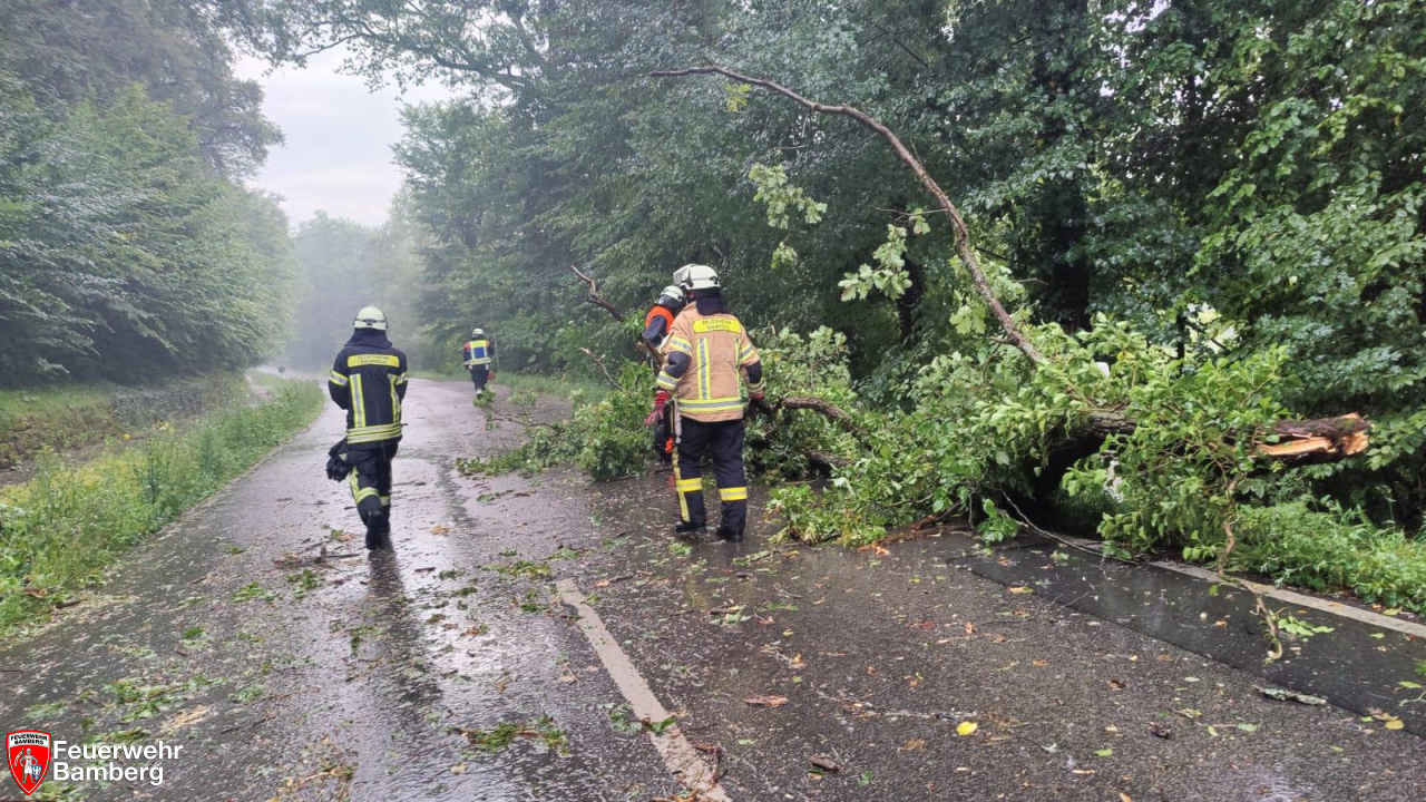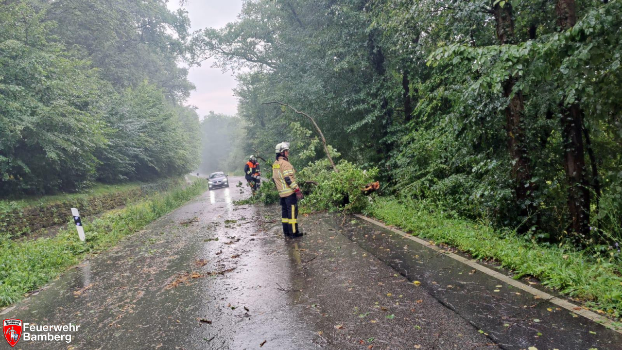 Auf der Verbindungsstraße zwischen Bug und Pettstadt fielen bei einem vergleichsweise harmlosen Unwetter gleich mehrere Bäume um und versperrten die Straße.