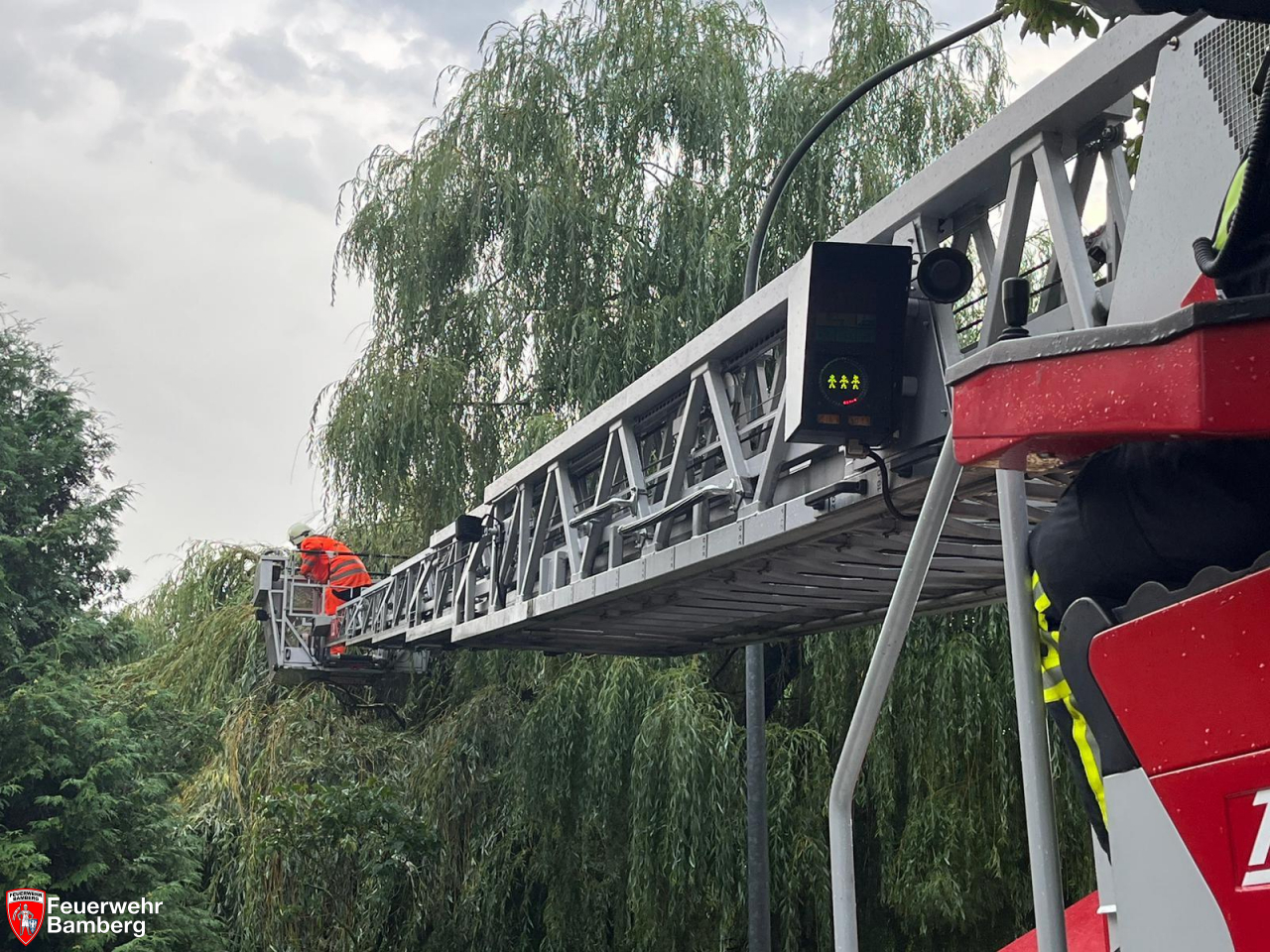 Am Abend wurde die Feuerwehr Bamberg in den Luitpoldhain zur Beseitigung einer großen abgeknickten Weide alarmiert.