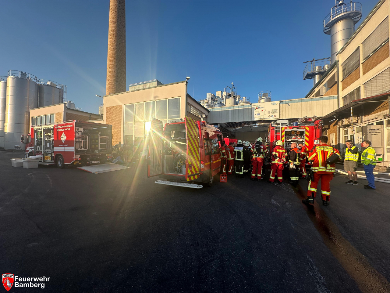 Noch in der Nacht wurde die Feuerwehr Bamberg zu einem Betrieb in der Scheßlitzer Straße alarmiert. Mitarbeitende meldeten austretende Gefahrstoffe und entstehende giftige Dämpfe.