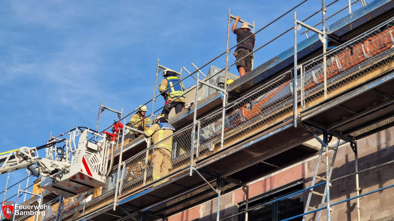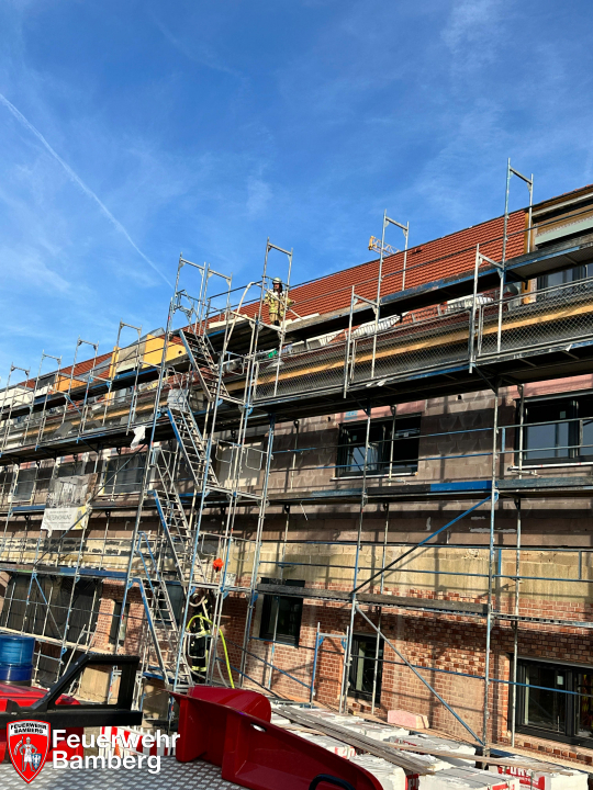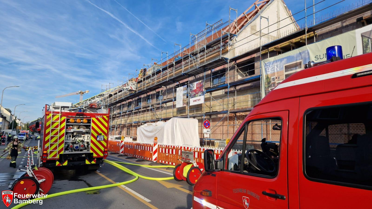 Am Abend wurde die Feuerwehr Bamberg zu einer Rauchentwicklung im Dachbereich eines Gebäudes in die Zollnerstraße alarmiert. Bei Eintreffen an der Einsatzstelle bestätigte sich das Meldebild an einer dortigen Baustelle.