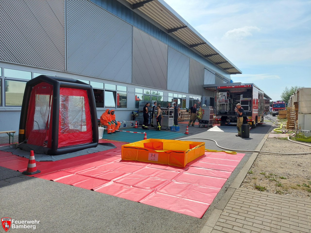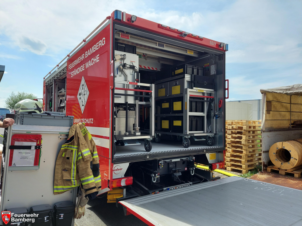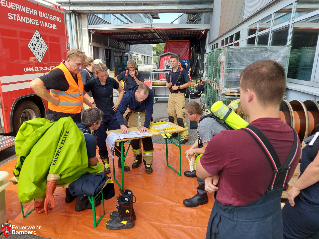 Die Einsatzleitung verschaffte sich kurz ein Bild der Lage und ließ umgehend den Gefahrgutzug der Feuerwehr Bamberg nachalarmieren.
