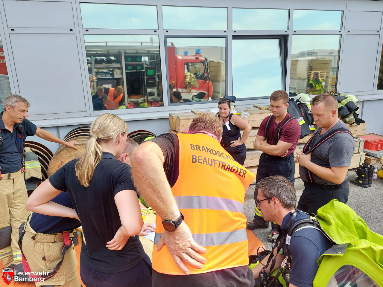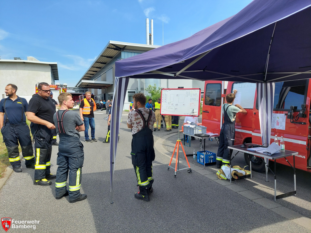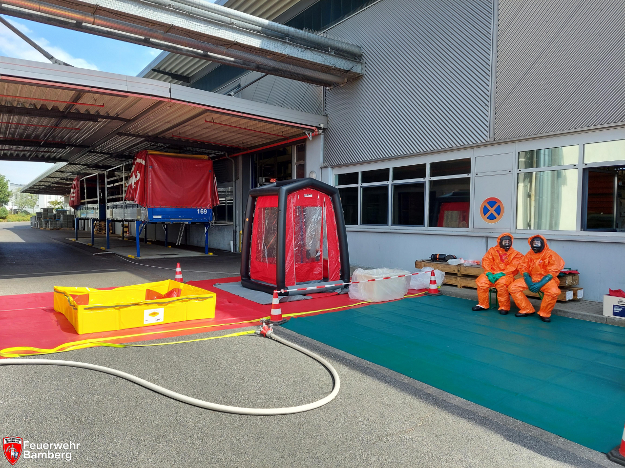Die Einsatzleitung verschaffte sich kurz ein Bild der Lage und ließ umgehend den Gefahrgutzug der Feuerwehr Bamberg nachalarmieren.