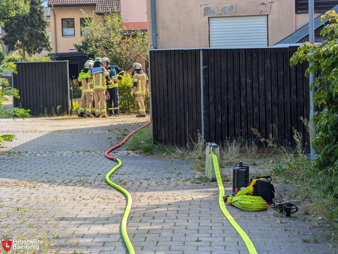 Aufgrund des Brandereignisses zog auch Rauch ins Nachbargebäude, welches durch einen weiteren Trupp unter schwerem Atemschutz kontrolliert und belüftet werden musste.
