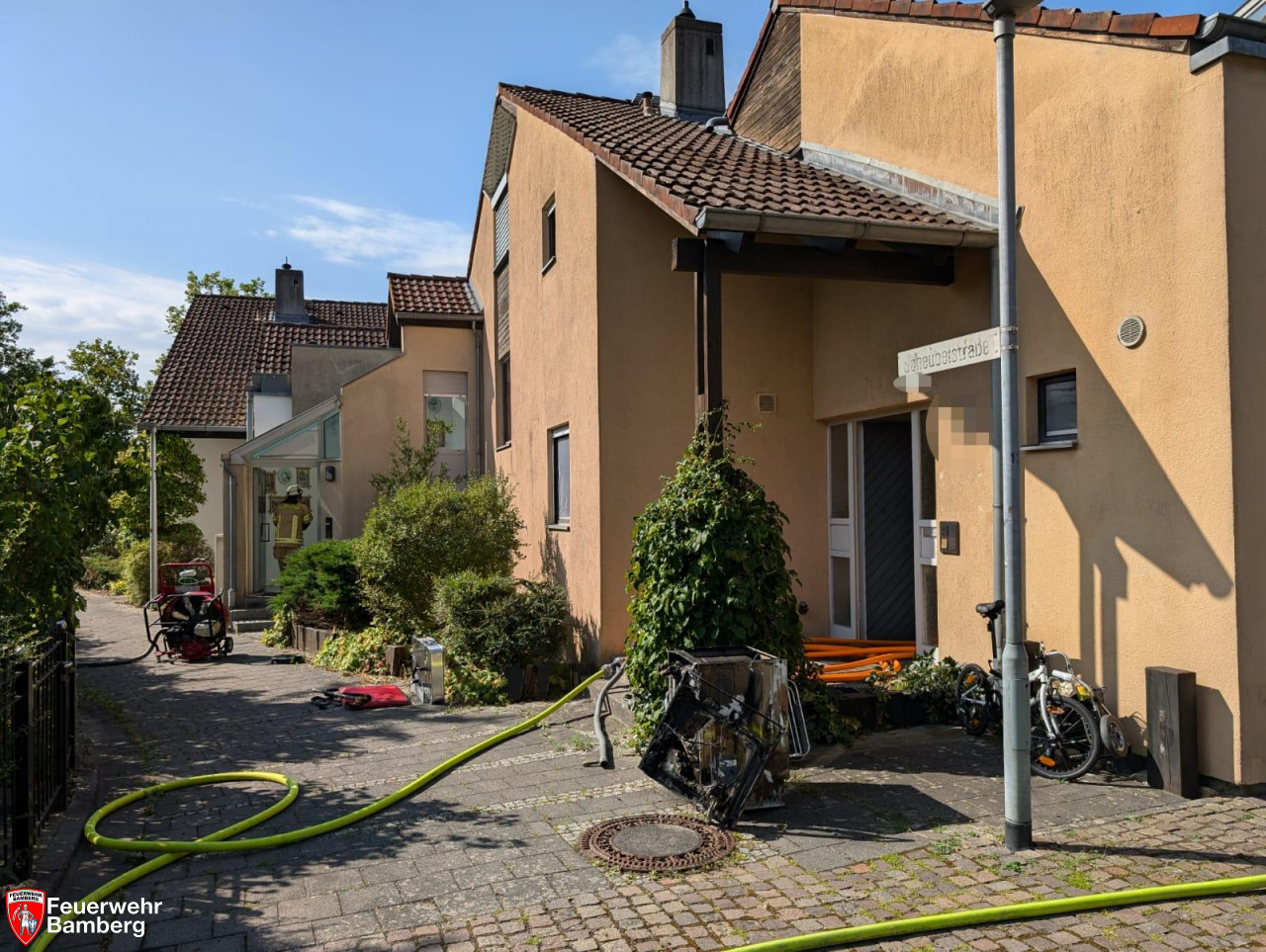 In den Morgenstunden wurde die Feuerwehr Bamberg zu einem Brandeinsatz in die Scheubelstraße alarmiert. Bereits in der Alarminfo erging der Hinweis, dass ein Trockner im Kellergeschoss brennt.