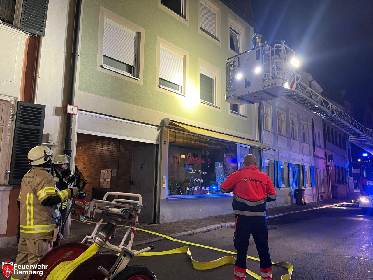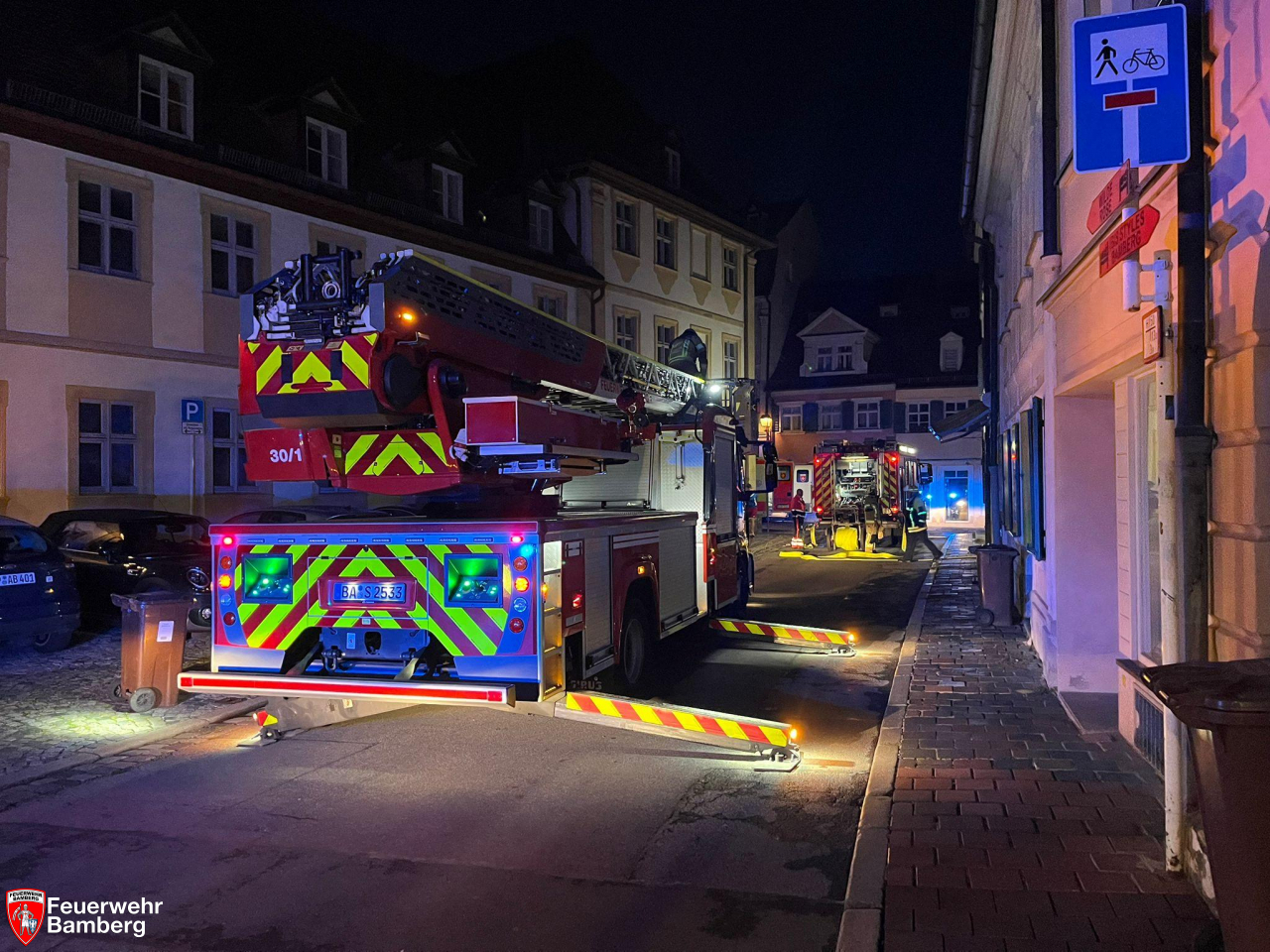 Am Morgen wurde die Feuerwehr Bamberg in die Altstadt zu einem ausgelösten privaten Rauchmelder alarmiert. Anwohner hörten den Alarm aus einer der Wohnungen und nahmen auch die typischen Rauchgerüche nach verbranntem Essen wahr.