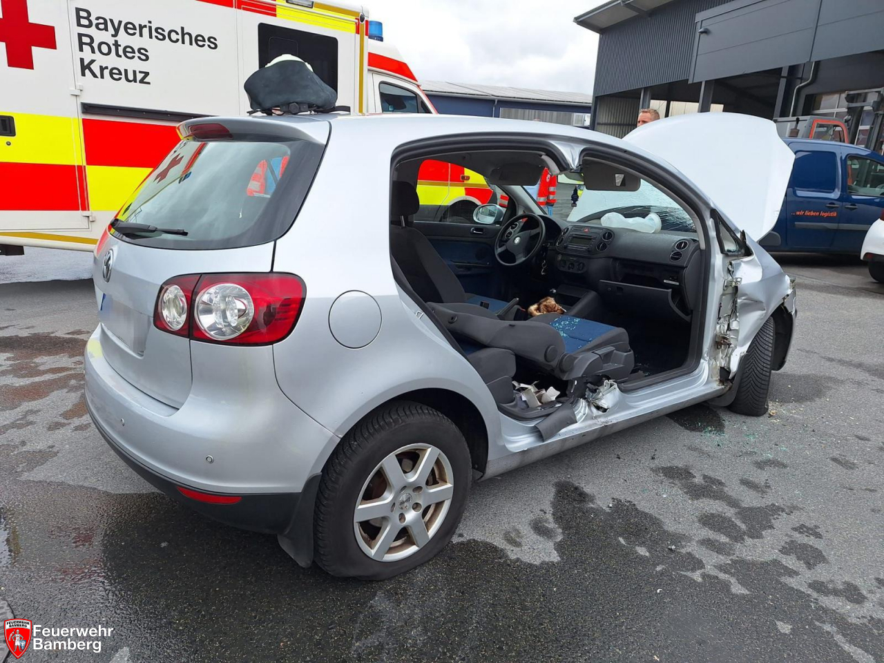 Freitag zur Mittagszeit wurde die Feuerwehr Bamberg auf das Betriebsgelände eines Speditionsunternehmens zur Personenrettung aus Pkw alarmiert. Nach dem Zusammenstoß eines Lkw mit einem Pkw, war dieser so stark verformt, dass sich die Beifahrertür nicht mehr öffnen ließ. Die Person war eingeschlossen, aber nicht eingeklemmt.