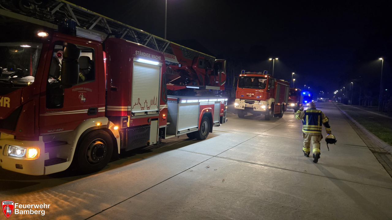 Am Abend wurde die Feuerwehr Bamberg auf das Ausbildungsgelände der Bundespolizei alarmiert. Die Brandmeldeanlage in einem der Unterkunftsgebäude hatte ausgelöst.