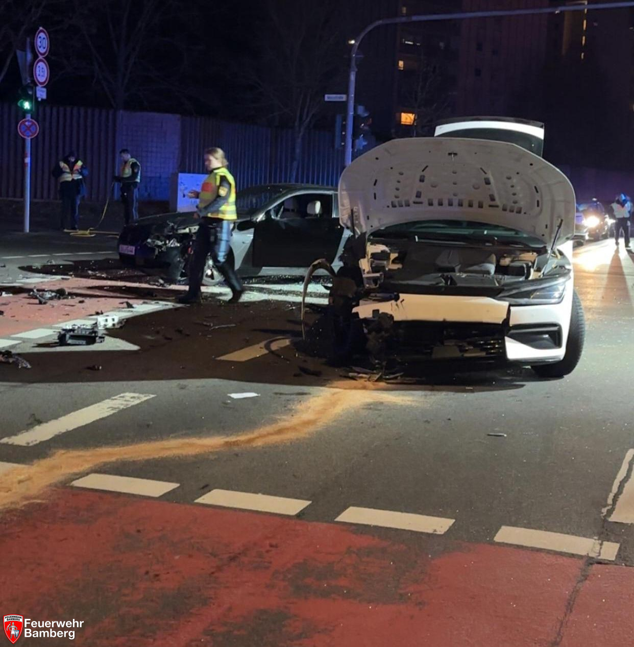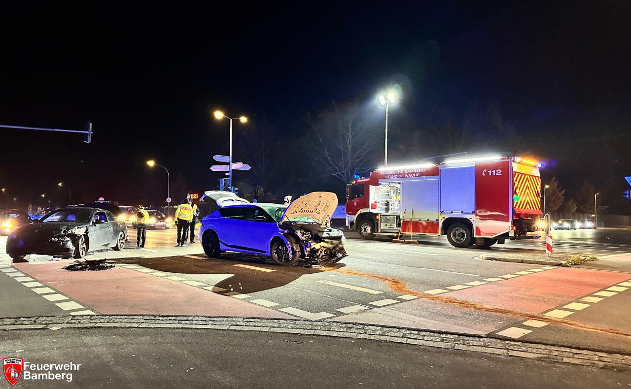Die Feuerwehr Bamberg wurde am Abend zu einem Verkehrsunfall auf dem Berliner Ring alarmiert. An der Kreuzung zur Moosstraße kam es erneut zu einem Verkehrsunfall mit mehreren beteiligten Fahrzeugen und leicht verletzten Personen.
