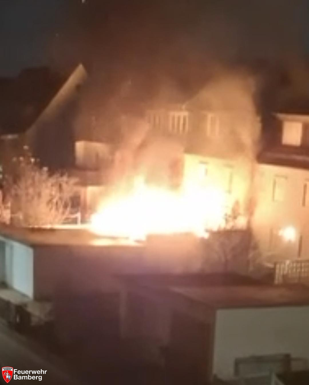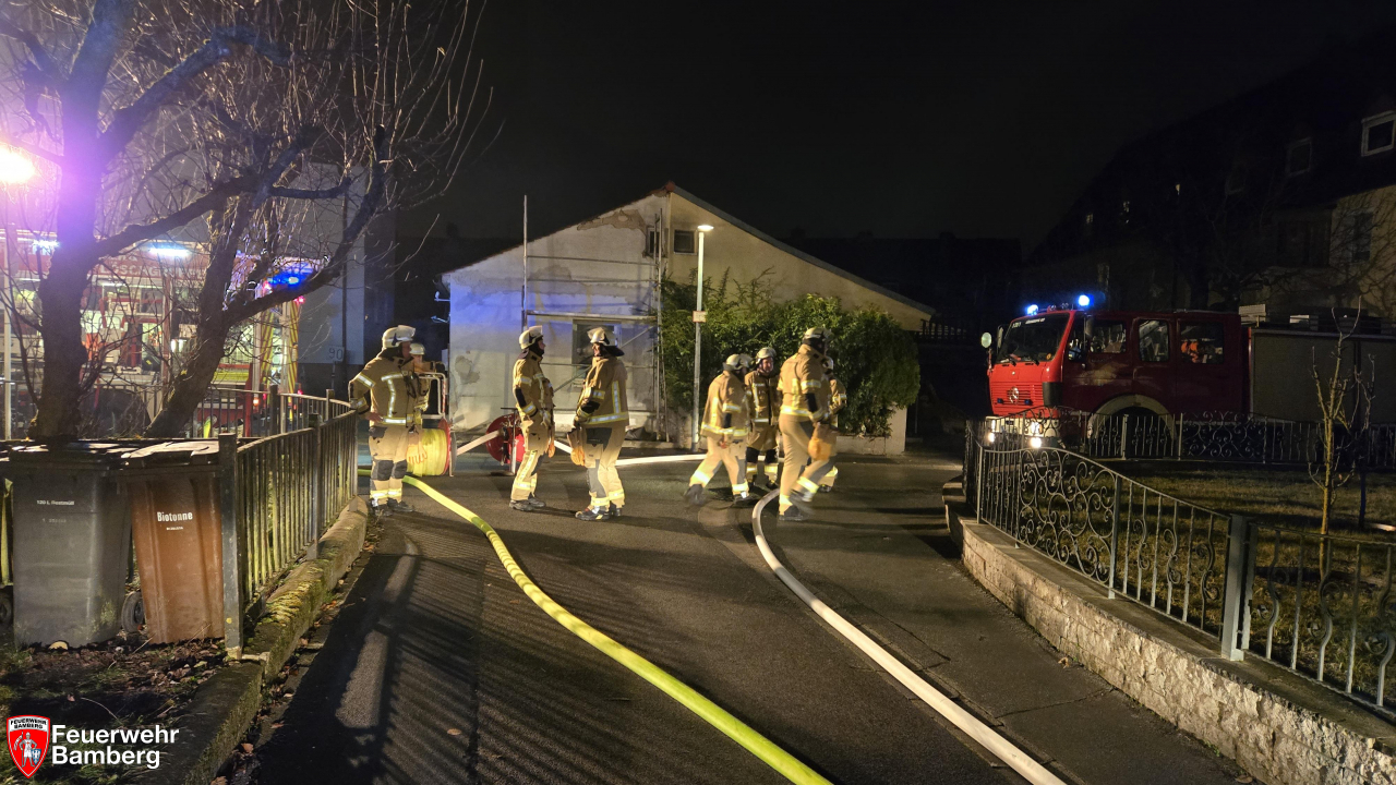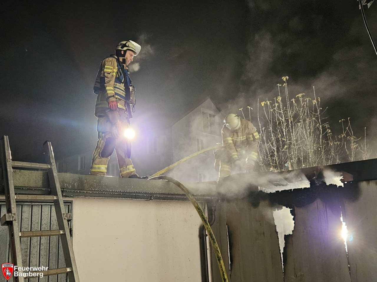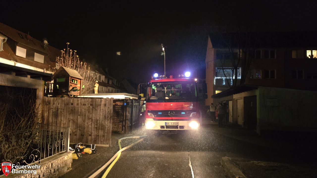 Am Sonntag Abend wurde die Feuerwehr Bamberg in die Gartenstadt zu einem brennenden Holzunterstand alarmiert. Das Feuer hatte bereits auf die Terrasse übergegriffen und drohte auf angrenzende Wohngebäude überzuschlagen. Die Flammen schlugen meterhoch und erreichten fast die Dachtraufe.