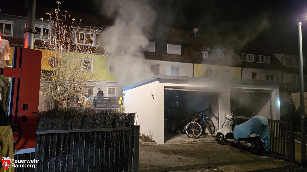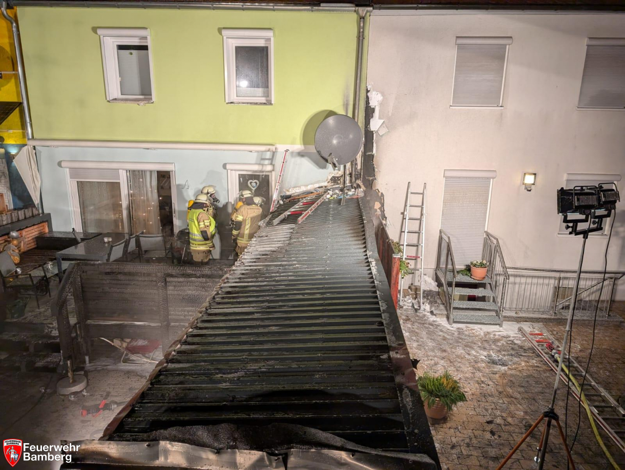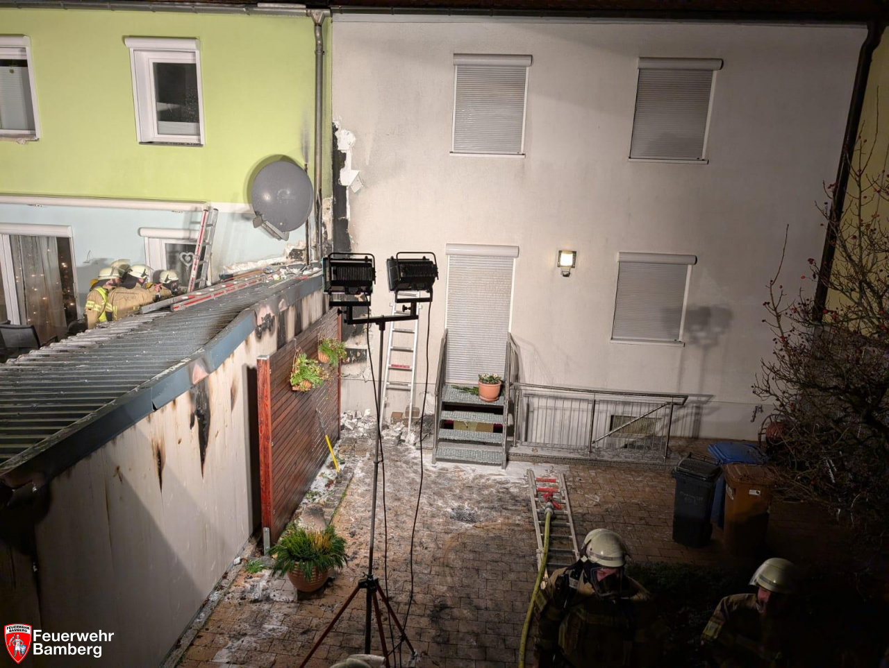 Am Sonntag Abend wurde die Feuerwehr Bamberg in die Gartenstadt zu einem brennenden Holzunterstand alarmiert. Das Feuer hatte bereits auf die Terrasse übergegriffen und drohte auf angrenzende Wohngebäude überzuschlagen. Die Flammen schlugen meterhoch und erreichten fast die Dachtraufe.