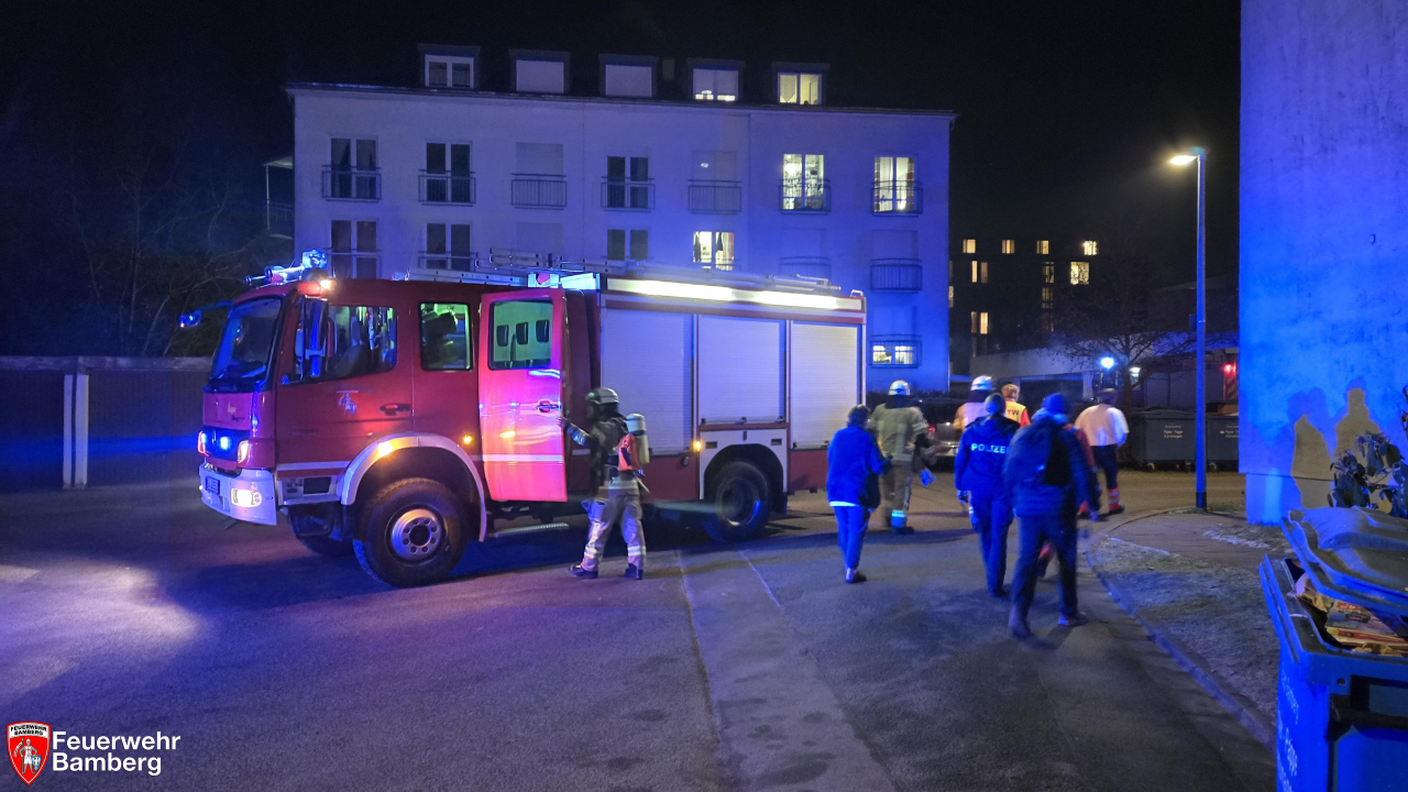 Am Abend kam es in einem Mehrfamilienhaus in der Wassermannstraße zu einer Rauchentwicklung. Die Feuerwehr Bamberg musste anrücken, um die Tür aufzubrechen und herauszufinden, was die Ursache war. Bewohner des Hauses meldeten, dass Rauch wahrnehmbar war und niemand öffnete. Zudem war der Rauchwarnmelder zu hören.