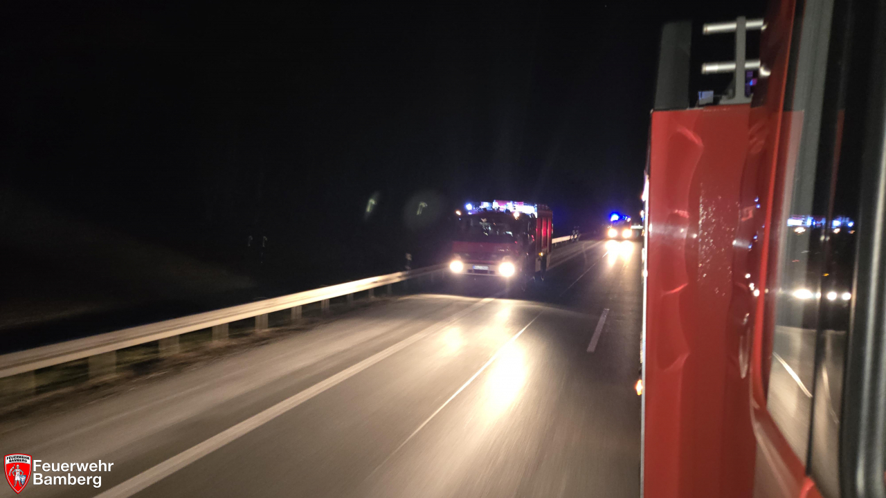 Am Abend wurde die Feuerwehr Bamberg auf die Autobahn A 73 Richtung Süden alarmiert. Von mindestens einem Pkw wurde ein Frontschaden mit automatischer Auslösung des eCalls ohne Spracherwiderung gemeldet.