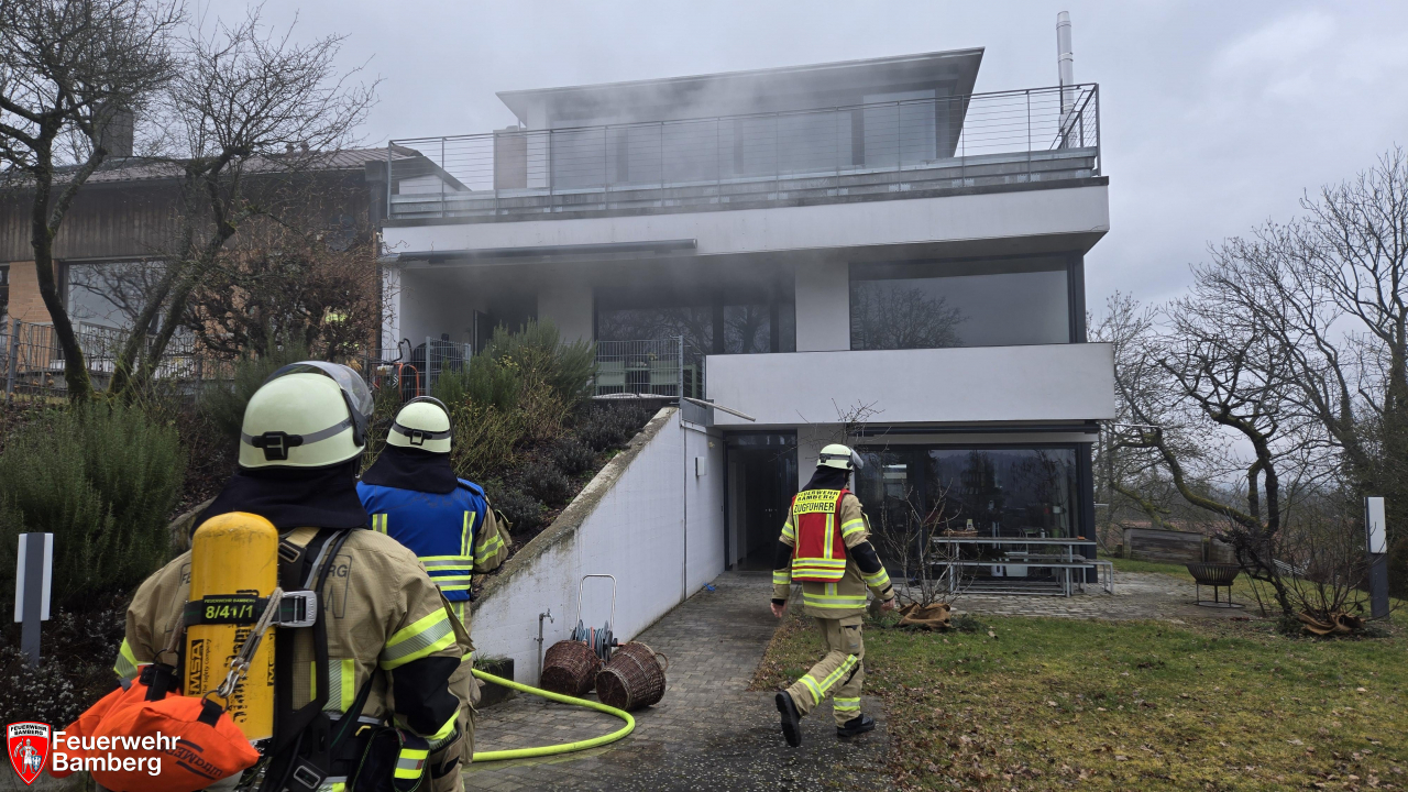 Am Samstag Vormittag brach im Bamberger Berggebiet ein Feuer in einem Wohnhaus aus. Die Feuerwehr Bamberg wurde zu einem Zimmerbrand "B3 ohne Personen in Gefahr" alarmiert. Die Eigentümer kamen gerade von einem Spaziergang nach Hause, als sie das Feuer im Küchentrakt bemerkten und noch selbst den Notruf wählten.