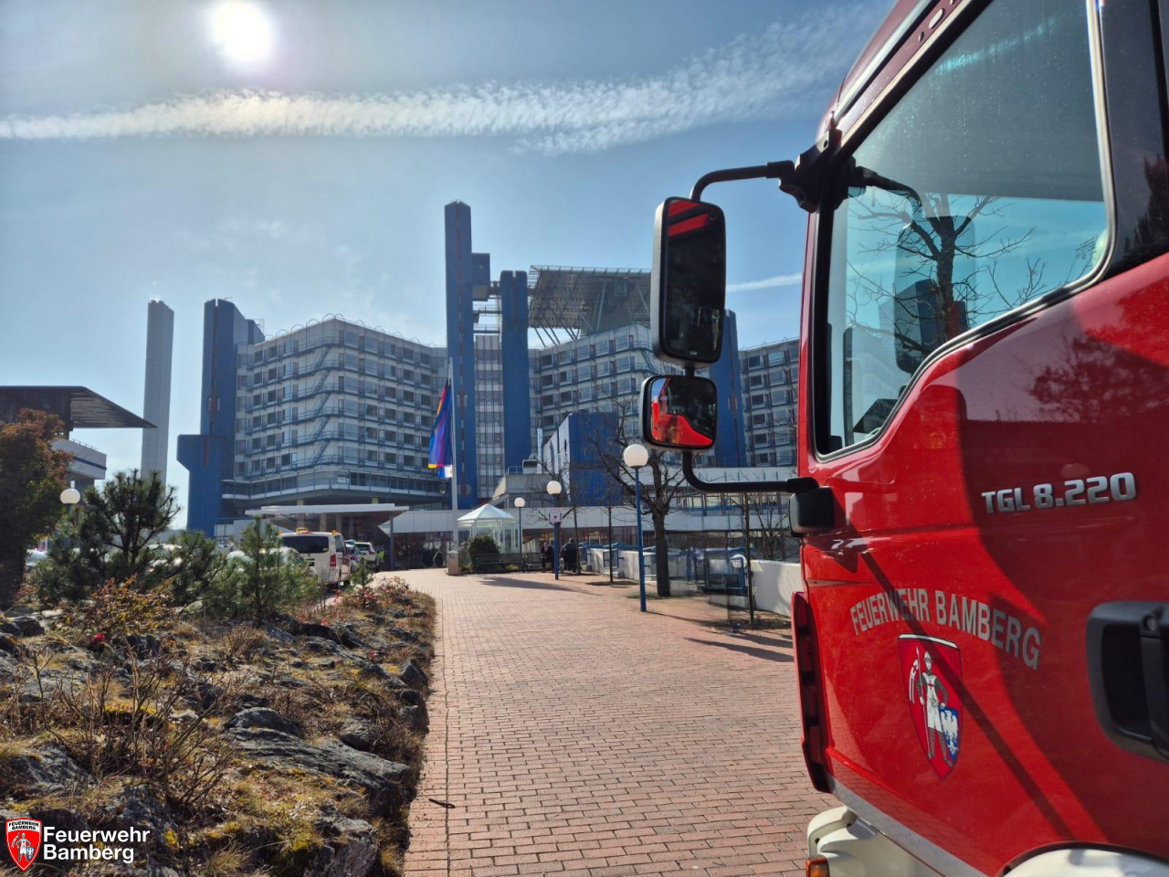 Zur Mittagszeit wurde die Feuerwehr Bamberg zum Klinikum am Bruderwald zu einer ausgelösten Brandmeldeanlage alarmiert.