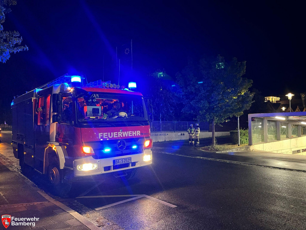 In der Nacht wurde die Feuerwehr Bamberg zu einer ausgelösten automatischen Brandmeldeanlage in einem Hotel nahe der Konzert- und Kongresshalle alarmiert.