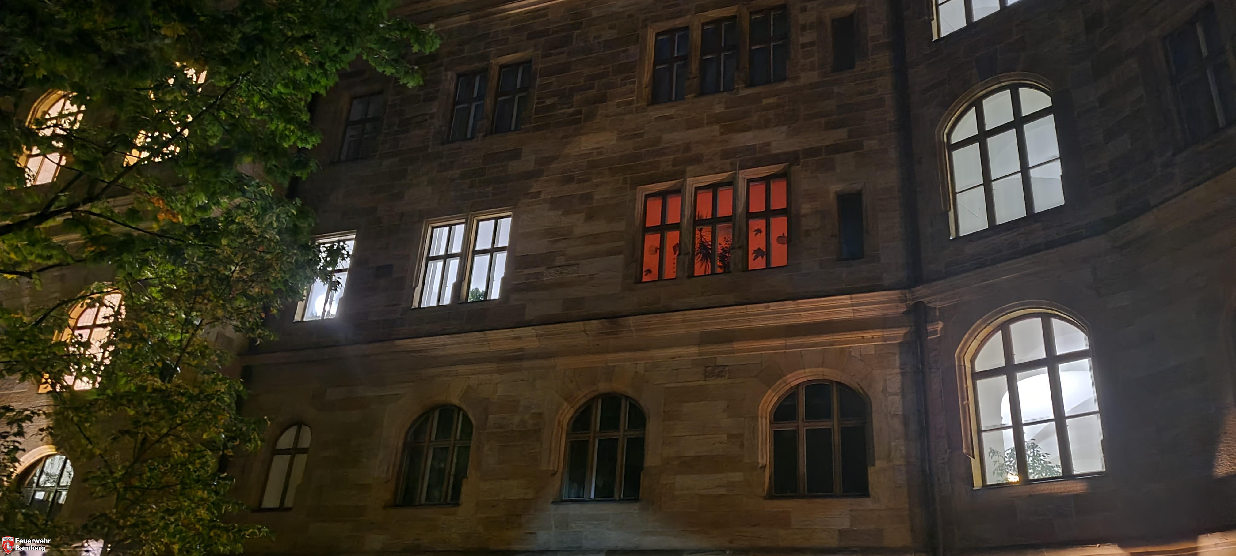 Die Feuerwehr Bamberg wurde am frühen Morgen zum Oberlandesgericht alarmiert. Ein Anwohner hatte verdächtige Lichterscheinungen in einem Fenster des Gebäudes entdeckt und wählte daraufhin den Notruf.