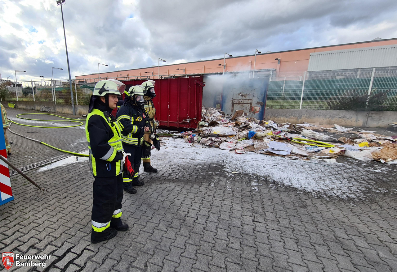 Die Feuerwehr wurde am Nachmittag zu einem brennenden Altpapiercontainer bei einem Bäckereibetrieb am Laubanger alarmiert.