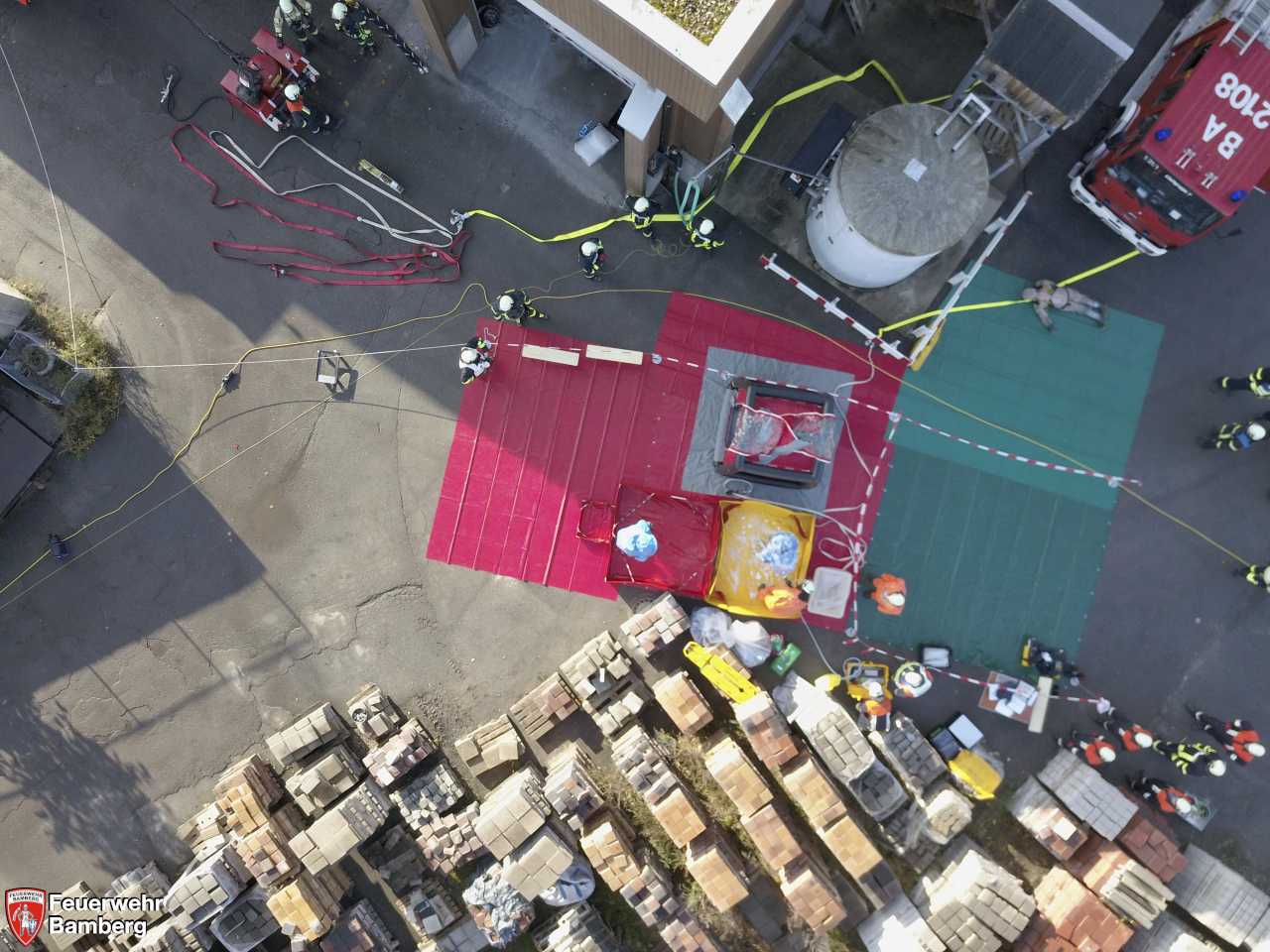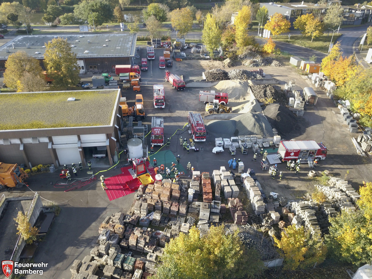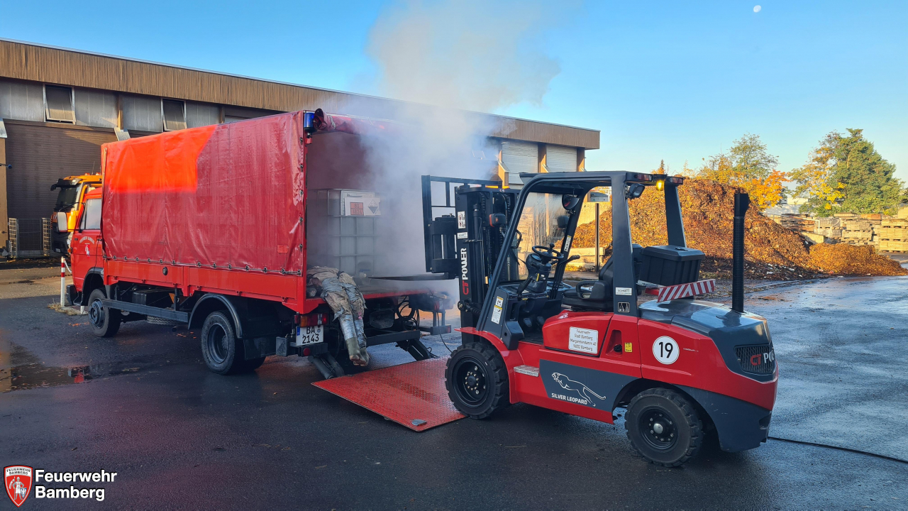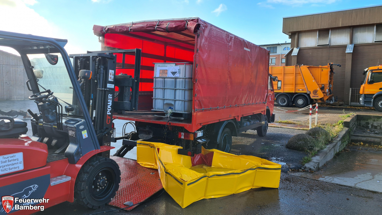 Im Rahmen der heutigen Einsatzübung auf dem Gelände der Bamberger Service Betriebe und der Ständigen Wache wurde geprobt, ob die einzelnen Stationen, die im Zuge der Neuanschaffung des Gerätewagen Gefahrgut (GW-G) im Einzelnen beübt wurden, in einem realistisch dargestellten Szenario auch miteinander harmonieren und Hand in Hand laufen.
