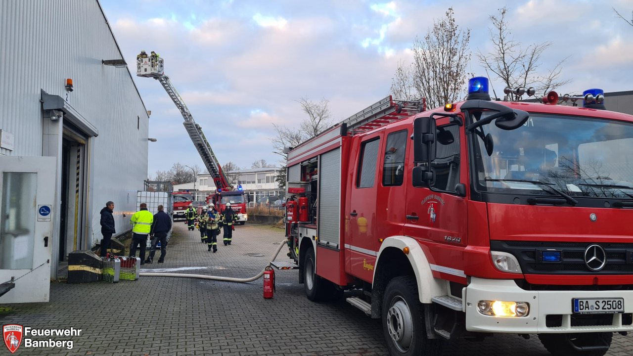 Am heutigen Montag um kurz nach acht Uhr wurde die Feuerwehr Bamberg mit der Ständigen Wache, Löschgruppe 1, Löschgruppe 3, UG-ÖEL und der Feuerwehr Hallstadt zum Brand in einer Industriehalle in das Gewerbegebiet Nord bei Kramersfeld alarmiert. Im Rauchabzug einer Maschine war ein Feuer ausgebrochen und drohte auf weitere Teile überzugreifen. Durch die Mitarbeiter wurde per Hand Alarm ausgelöst und erste Löschversuche unternommen.