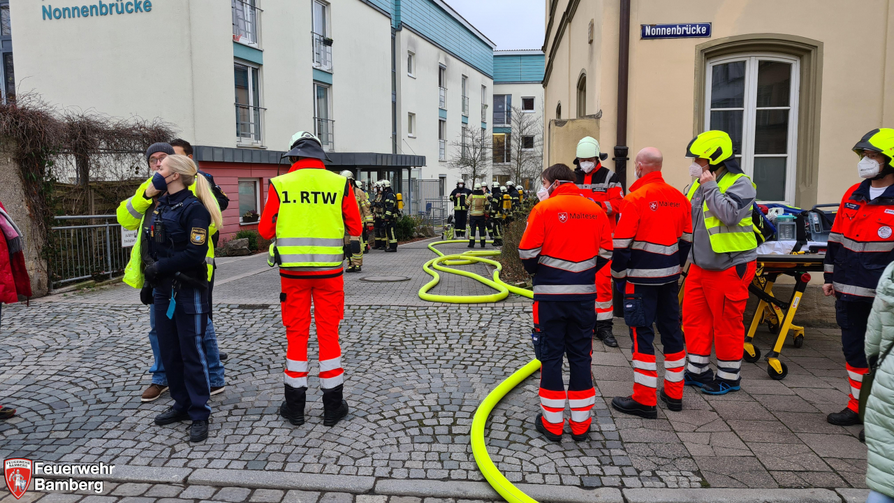 Am Samstag Mittag wurde die Feuerwehr Bamberg in die Innenstadt zum Altenheim an der Nonnenbrücke alarmiert. Im Keller des Gebäudes war ein Feuer ausgebrochen, einige Teile des Gebäudes waren bereits mehr oder weniger verraucht.