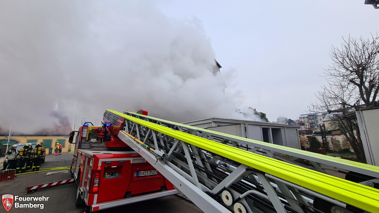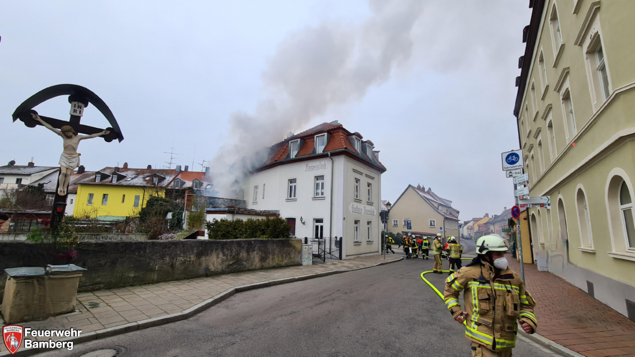 In den Mittagsstunden wurde die Feuerwehr Bamberg in das Gärtnerviertel zu einem Gebäudebrand alarmiert. Bereits auf der Anfahrt war weithin starke Rauchentwicklung sichtbar. Beim Eintreffen am Einsatzort war offenes Feuer am rückwärtigen Teil des Gebäudes erkennbar.