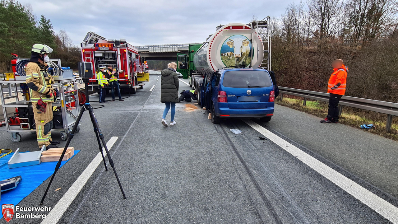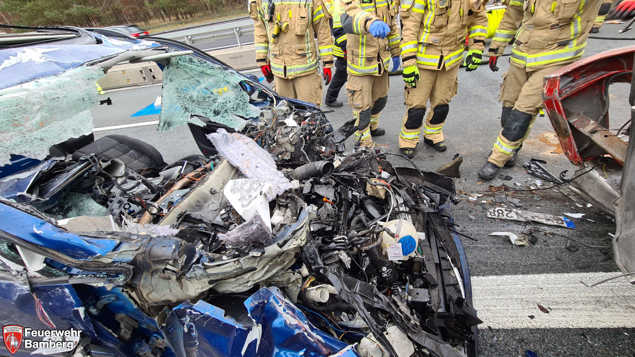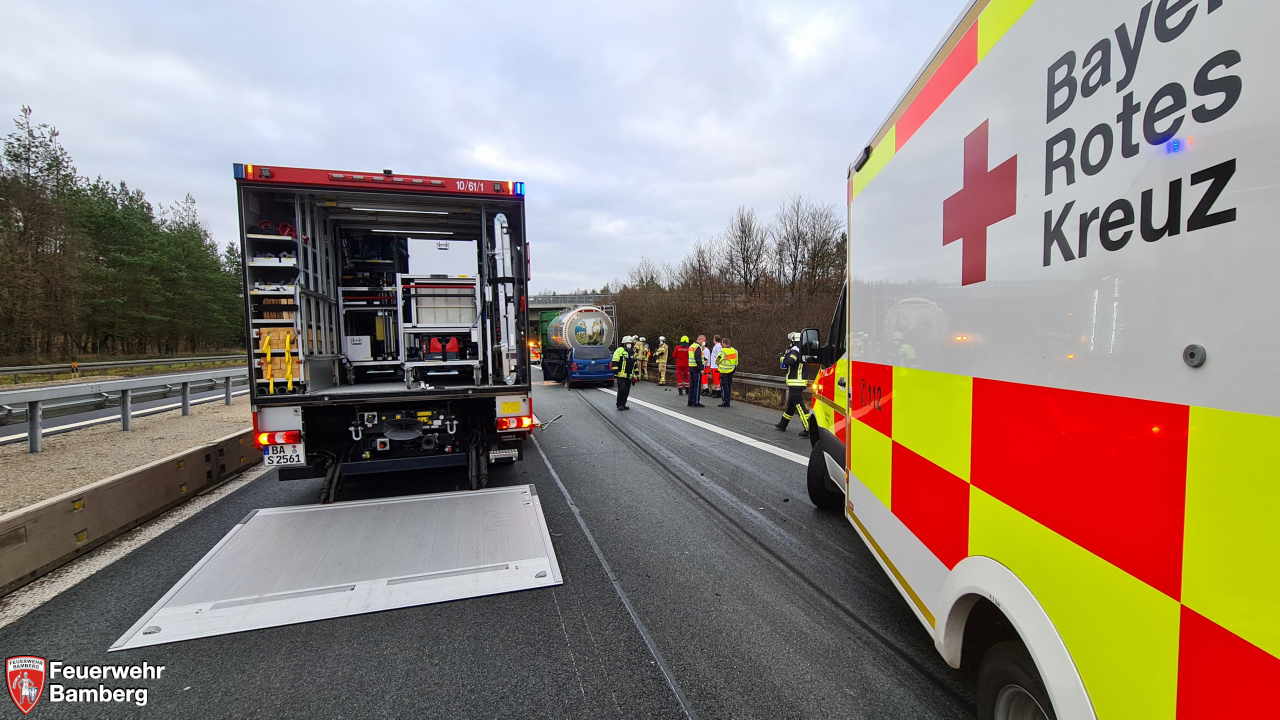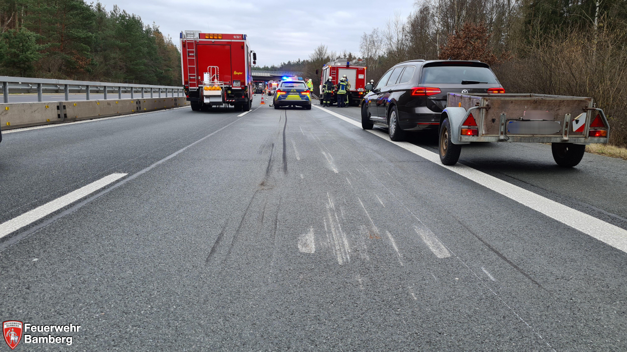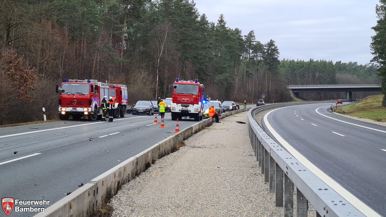Die Feuerwehr Bamberg wurde am Neujahrsmorgen zu einem Verkehrsunfall auf die A73 Fahrtrichtung Süden zu einem Auffahrunfall eines Pkw auf einen Lkw alarmiert.