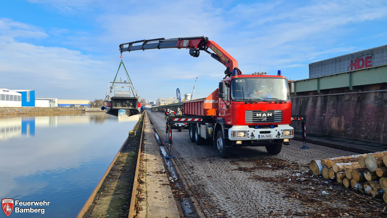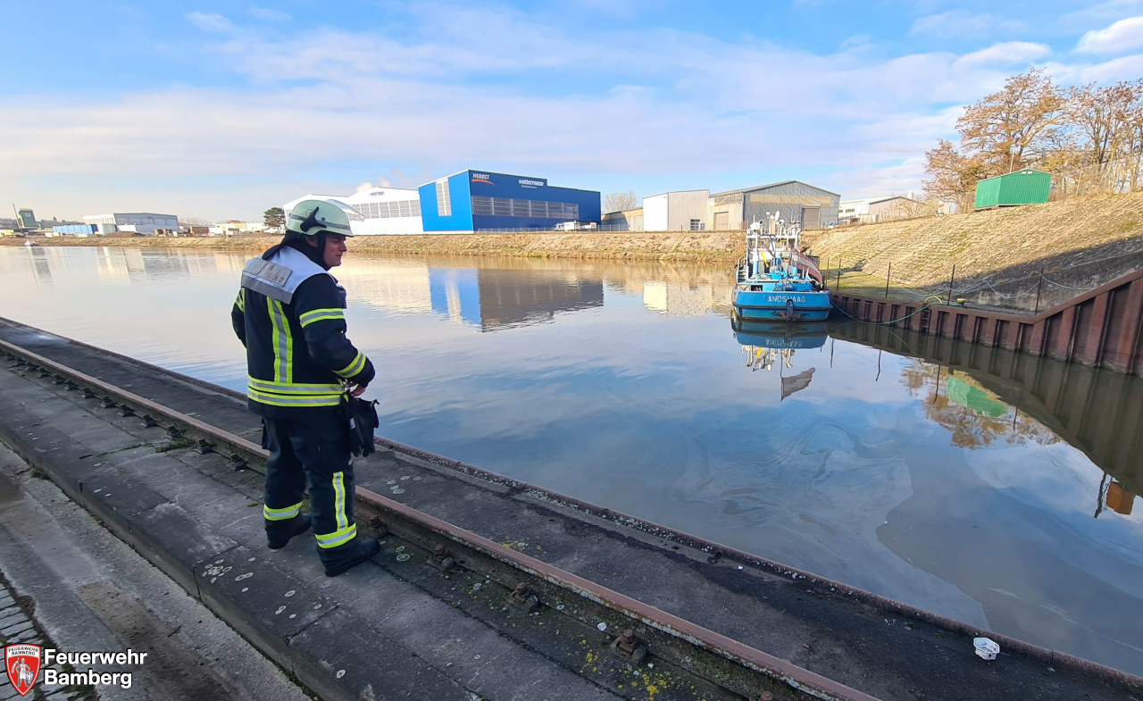Die Feuerwehr Bamberg wurde gegen Mittag in den Bamberger Hafen alarmiert, da Hafenmitarbeiter auf einer größeren Fläche Ölschlieren in einem Hafenbecken entdeckt hatten.