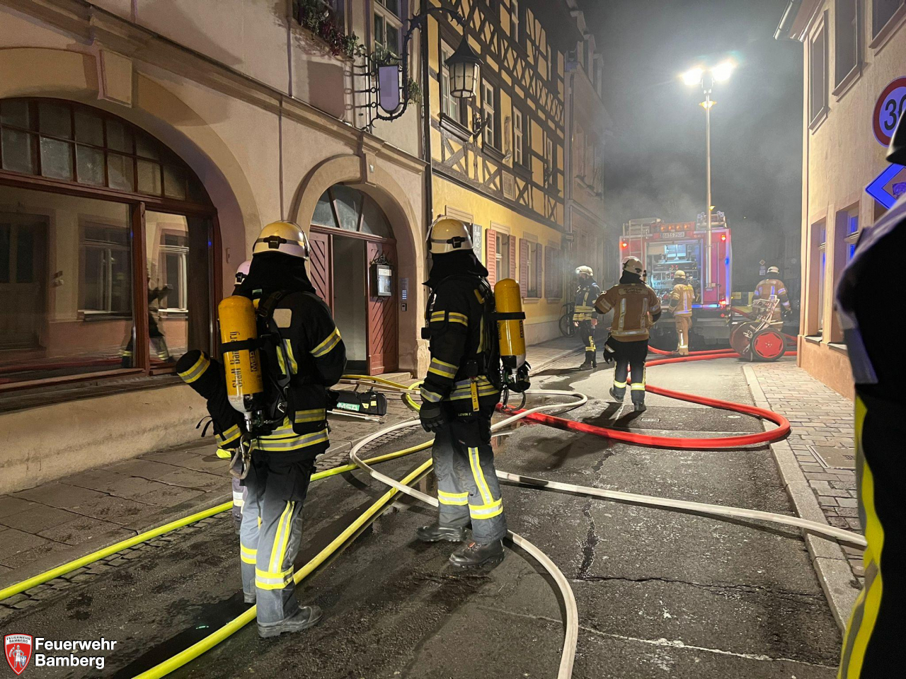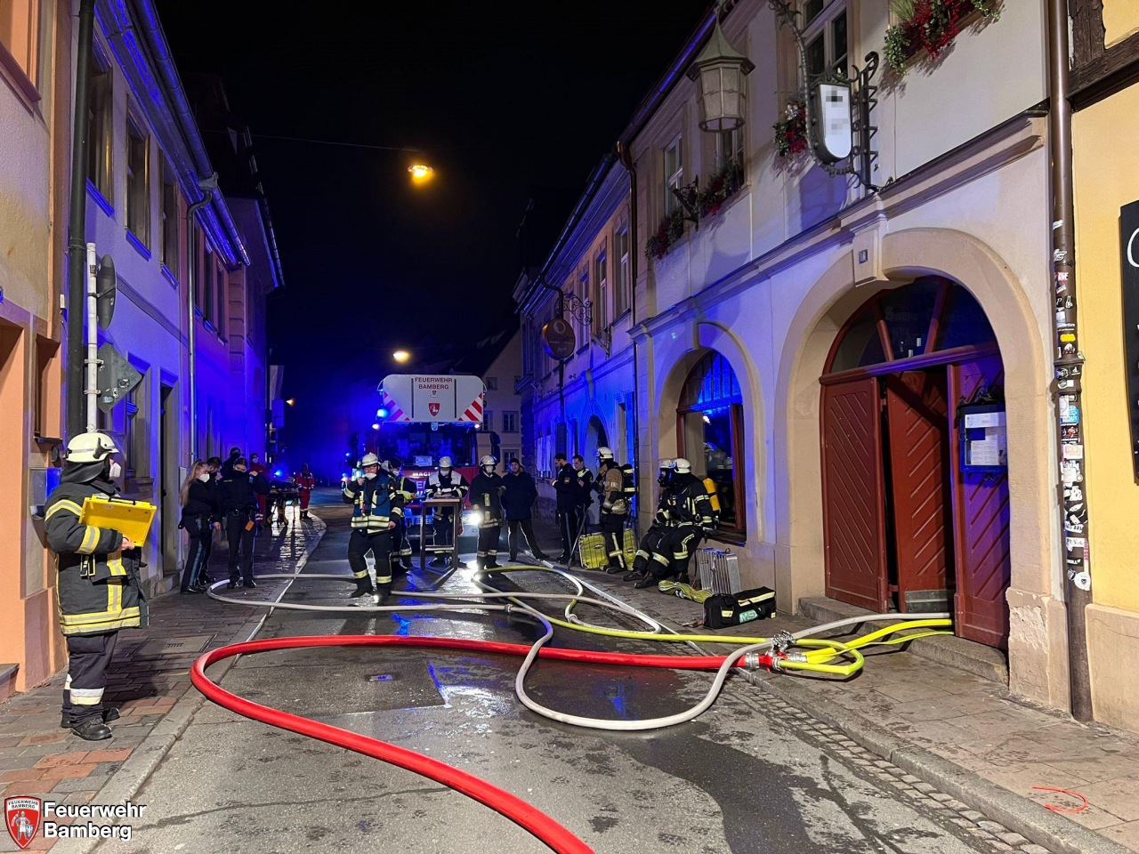 In der Nacht zum Mittwoch wurde die Feuerwehr Bamberg in die Untere Sandstraße zu einem Feuer in einem Lokal alarmiert.