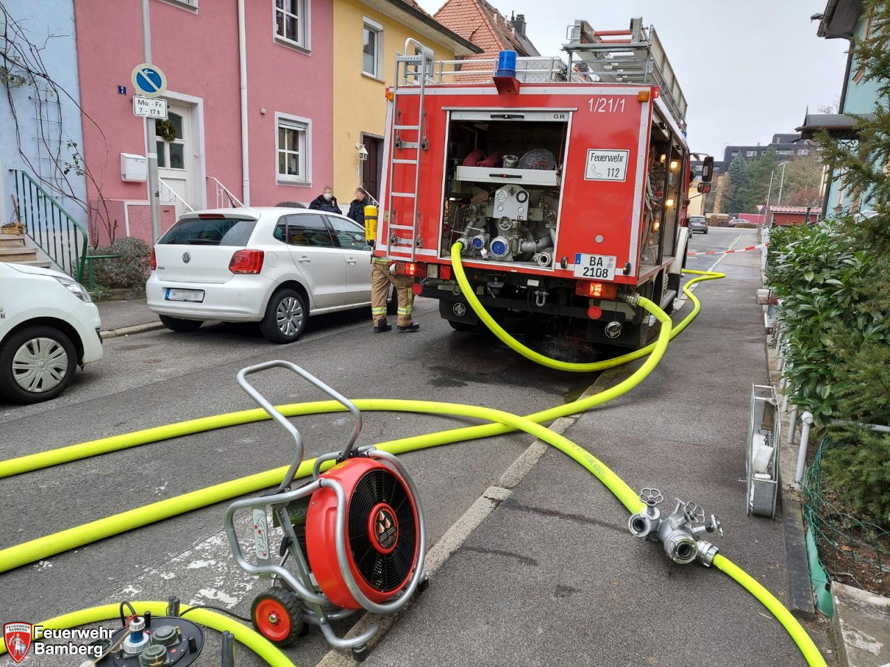Die Feuerwehr Bamberg wurde am Vormittag zu einer "Rauchentwicklung im Gebäude mit Personen in Gefahr" in die Aronstraße alarmiert.