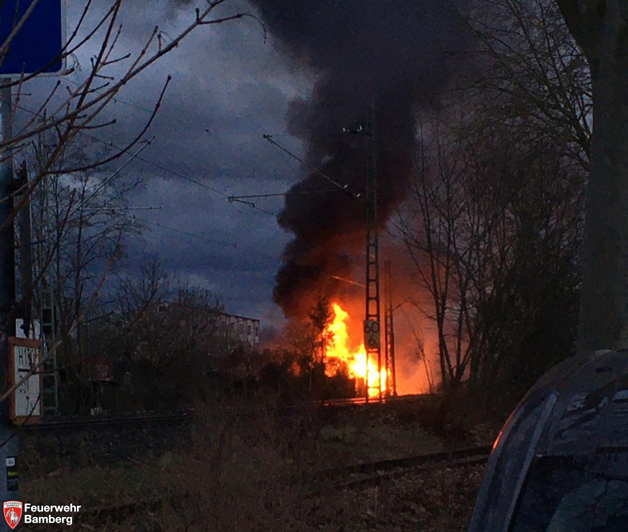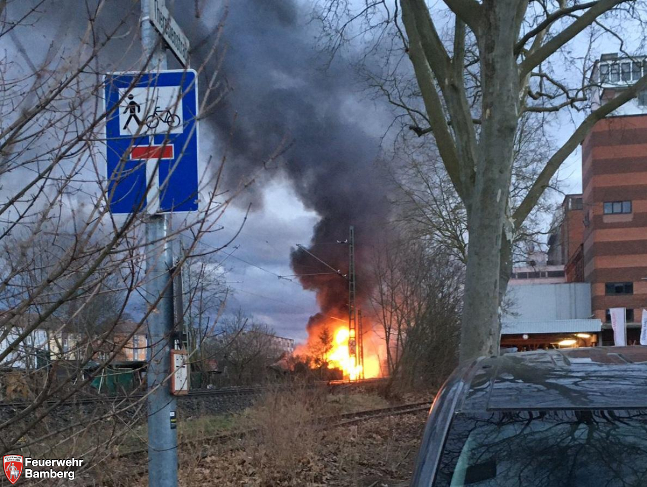 Um 17.30 Uhr wurde der Integrierten Leitstelle Bamberg von der Deutsche Bahn Leitstelle eine brennende Gartenlaube Bahndamm in der Nürnberger Straße gemeldet. Daraufhin löste die Leitstelle Alarm für die Ständige Wache aus.
