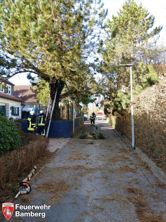 Die Feuerwehr Bamberg wurde in das Berggebiet alarmiert, um einen recht großen Baum zu entfernen, der durch den Sturm quer über einen Fussweg gestürzt war.