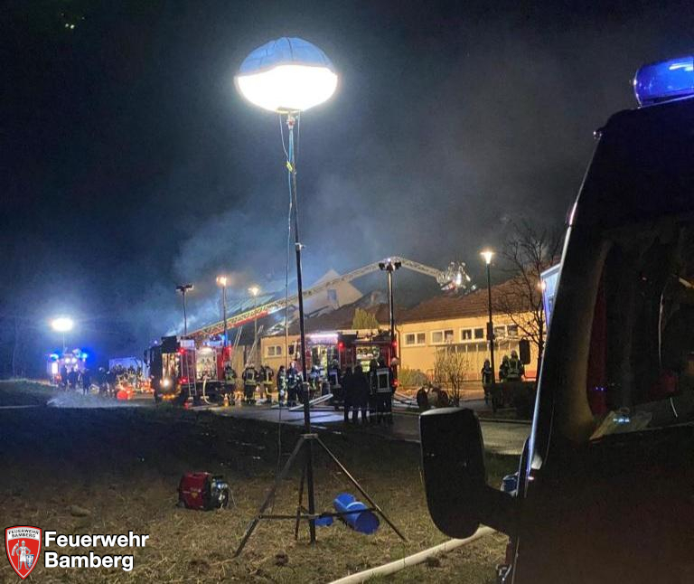 Am Samstag Abend wurde die Feuerwehr Bamberg mit Tanklöschfahrzeugen nach Oberhaid zu einem ausgedehnten Dachstuhlbrand alarmiert.