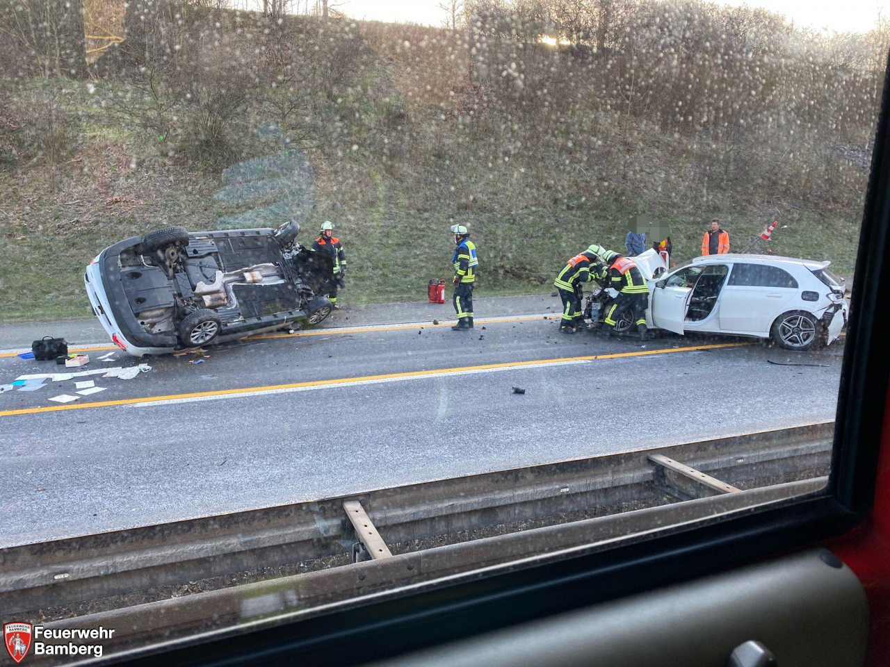Es musste eine Ausleitung bei der AS Hirschaid gestellt werden, da die Unfallstelle unpassierbar war und die Bordspannung der Unfallfahrzeuge getrennt werden.
