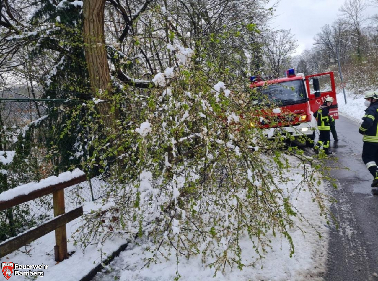 Die Feuerwehr Bamberg wurde am Vormittag in die Wildensorger Straße alarmiert. Auch hier hielt ein Stamm dem Gewicht des Schnees nicht stand.