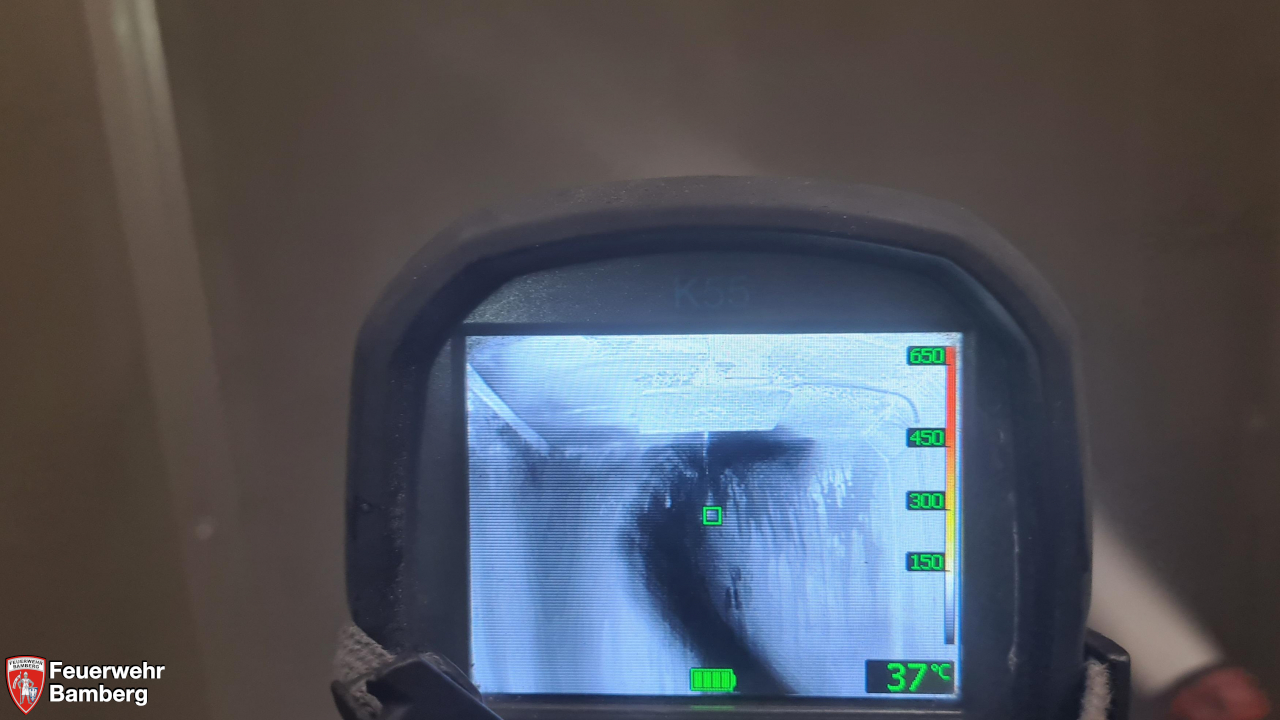 Nun wurde mit Wasser gezielt gekühlt und immer wieder mit der WBK auf erneuten Temperaturanstieg kontrolliert. Nachdem dies nicht der Fall war, konnte nach gut einer halben Stunde die Einsatzstelle an den Betriebsverantwortlichen übergeben werden.